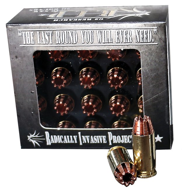 The G2 Research Radically Invasive Projectile .40 S&W 115-Grain Centerfire Handgun Ammunition features copper hollow-point bullets with 8 trocar-shaped petals that expand on impact. 298 ft.-lb. muzzle energy. 1,080 fps muzzle velocity.