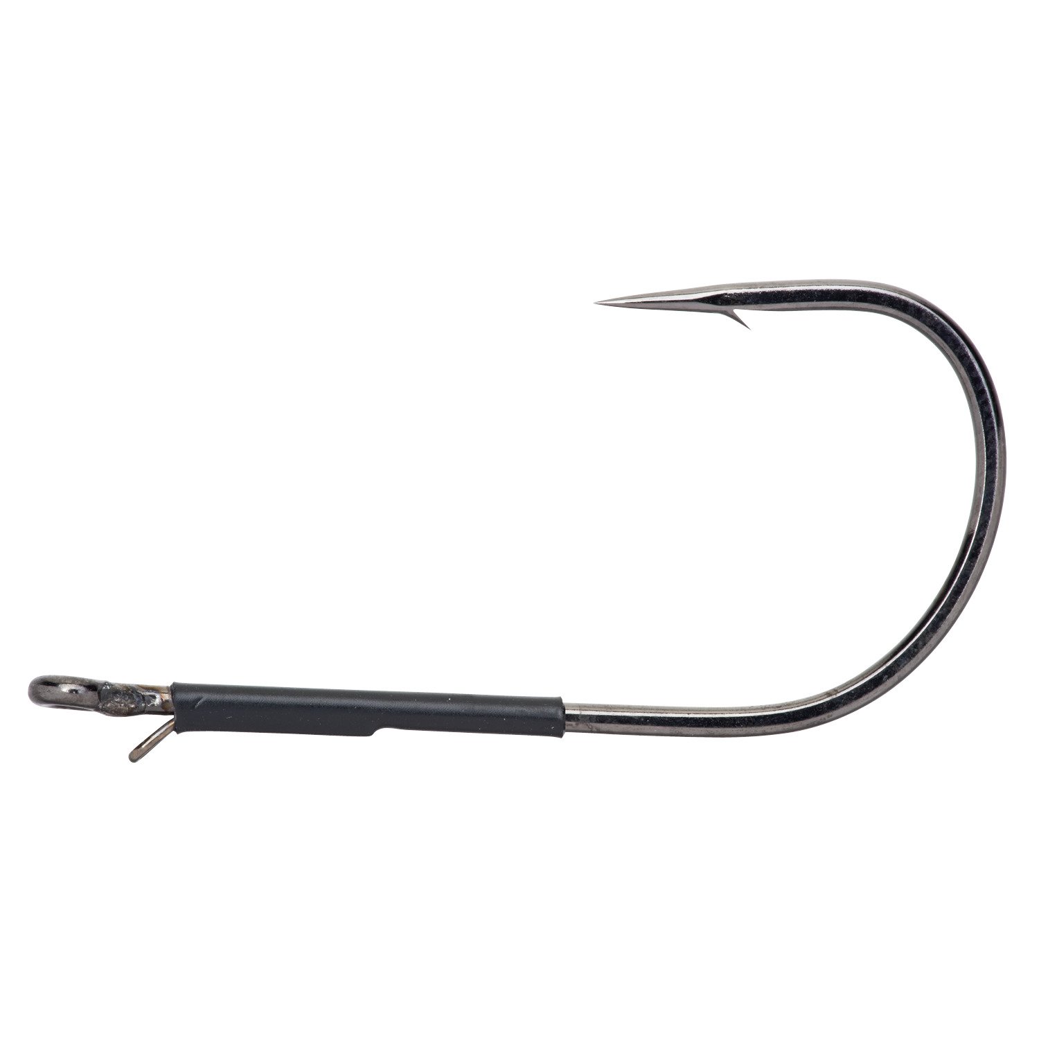 The Gamakatsu Heavy Cover Single Worm Hooks 4-Pack are constructed from high-carbon steel and each feature a welded eye and a small wire keeper with a compact profile and strategic placement to provide excellent holding power. Black nickel.
