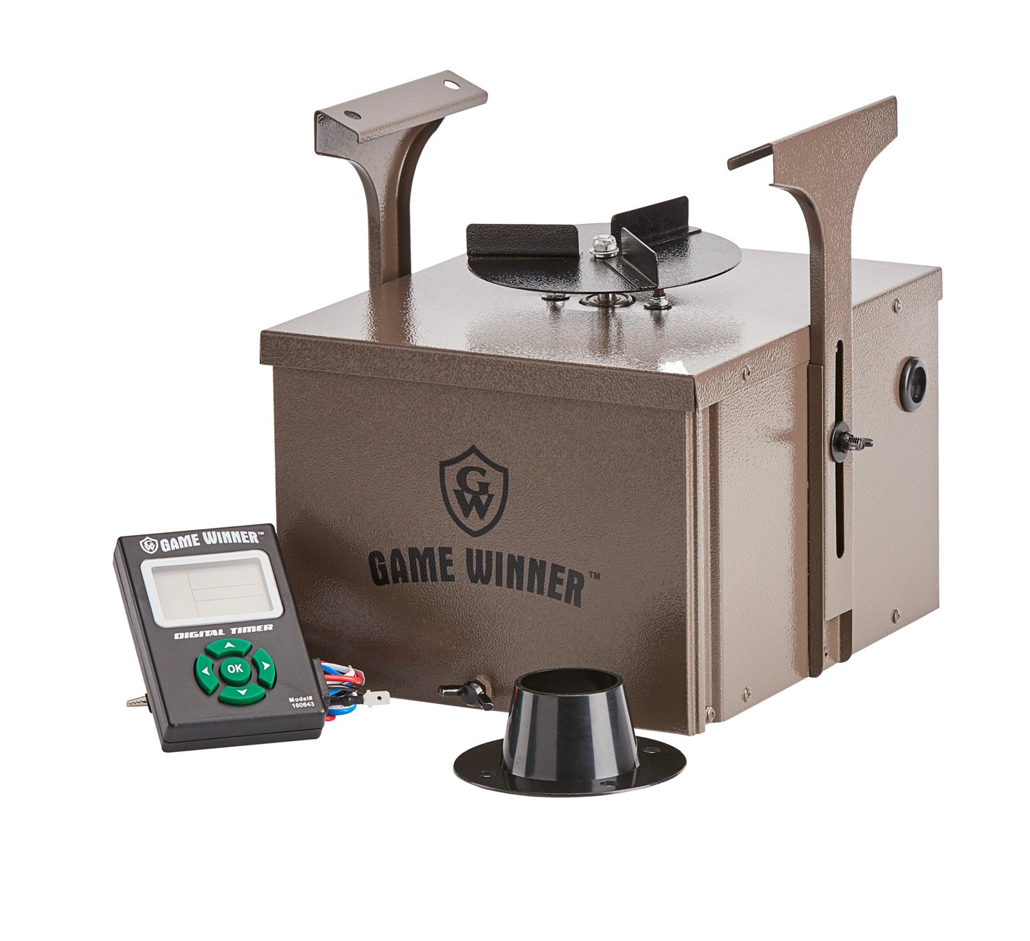 Upgrade your feeder with the Game Winner 12V Control Unit. This device replaces control units in feeders and boasts a 12-volt motor and a 5-inch spinner plate. Comes with a timer and feeder funnel.