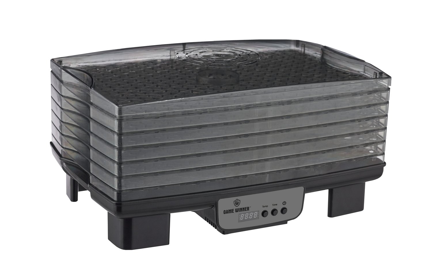 Prepare something great with the Game Winner® 6 Tray Dehydrator, which offers a 6-tray capacity with over 96 sq. ft. of drying space to prepare up to 5 lb. of jerky in 1 batch. The 550W electric motor offers a powerful drying performance, while the internal fan helps to effectively dry food from bottom to top. Adjustable digital control thermostat with a range from 104°F to 158°F. Includes 6 trays and a lid.