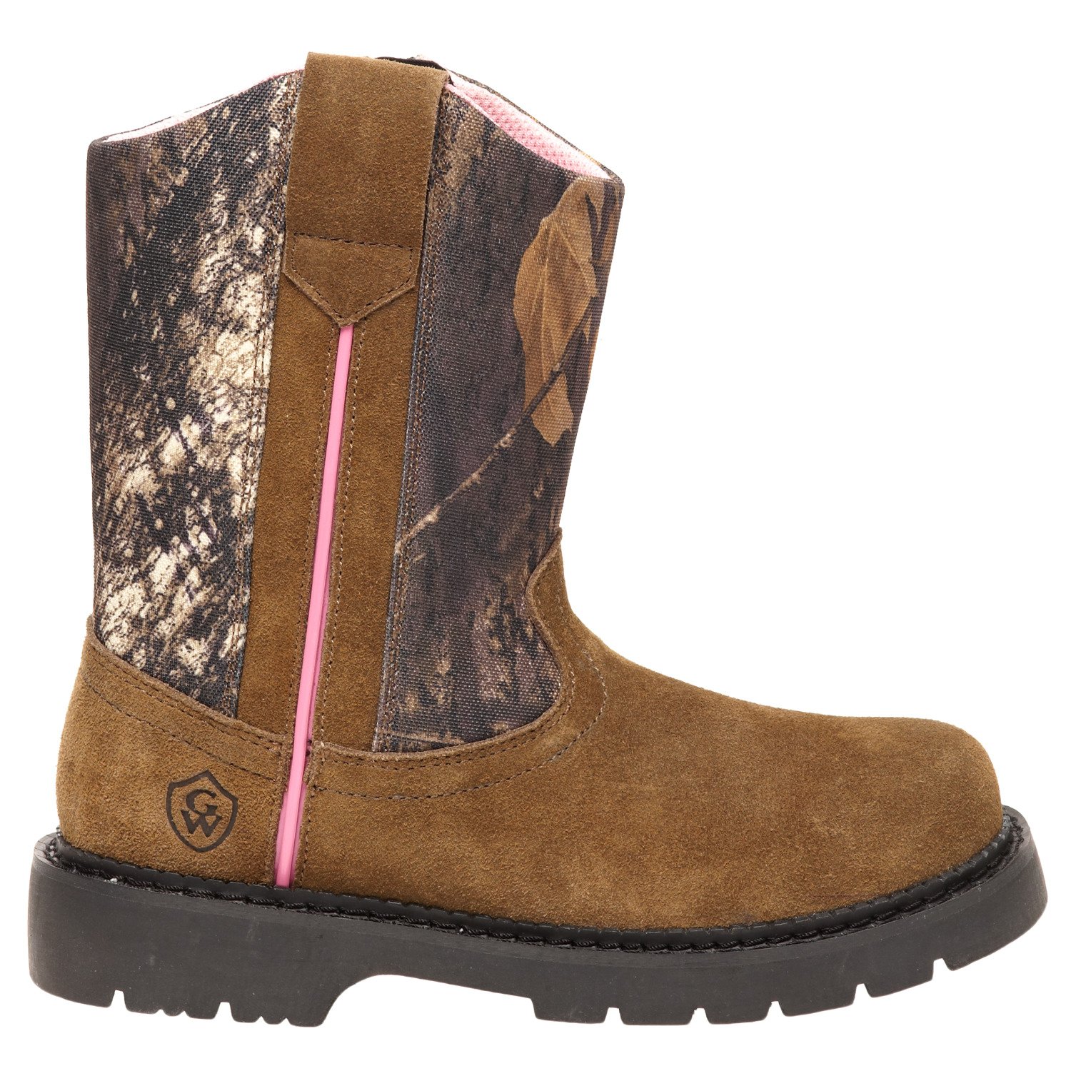 Great for young hunters, the Game Winner® Girls' Camo Wellington BX Hunting Boots feature suede and camo mesh uppers for breathability and durability and rubber outsoles that offer traction on a variety of surfaces. Steel shanks help protect the feet, and the slip-on design is easy to pull on and take off.