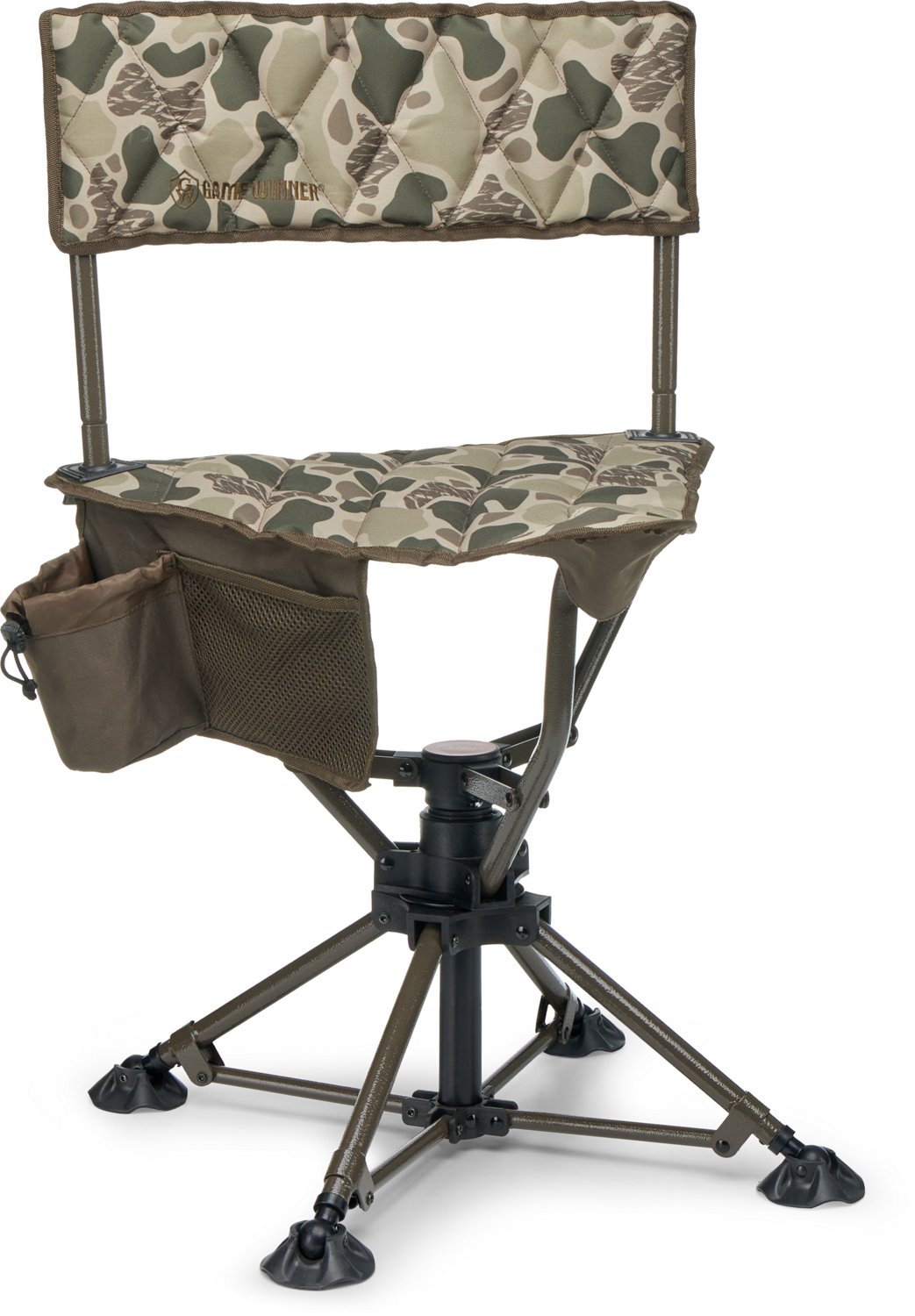 Set up for the hunt with the Game Winner Ultimate Swivel Stool. The 600D fabric offers durability, while the quilted seat and back provide comfort. The stool silently swivels, ensuring you won't disturb game that passes through.