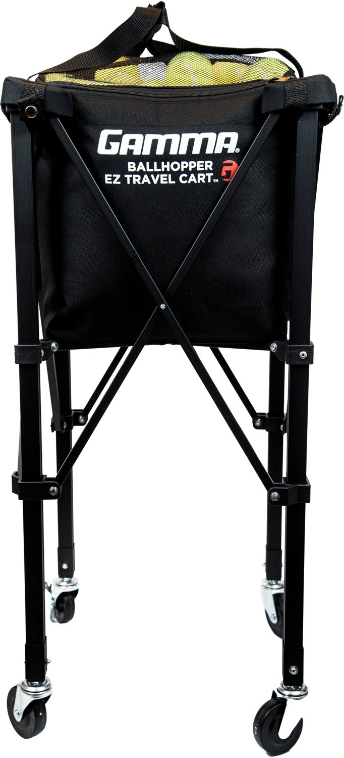 The GAMMA EZ Travel XD 150 Cart is the ultimate portable ballhopper. The nylon ball bag clips securely into the top of the cart with ease, and the swivel rubber wheels allow for quick transport. The cart quickly compresses and stores in its own carrying case for easy portability.