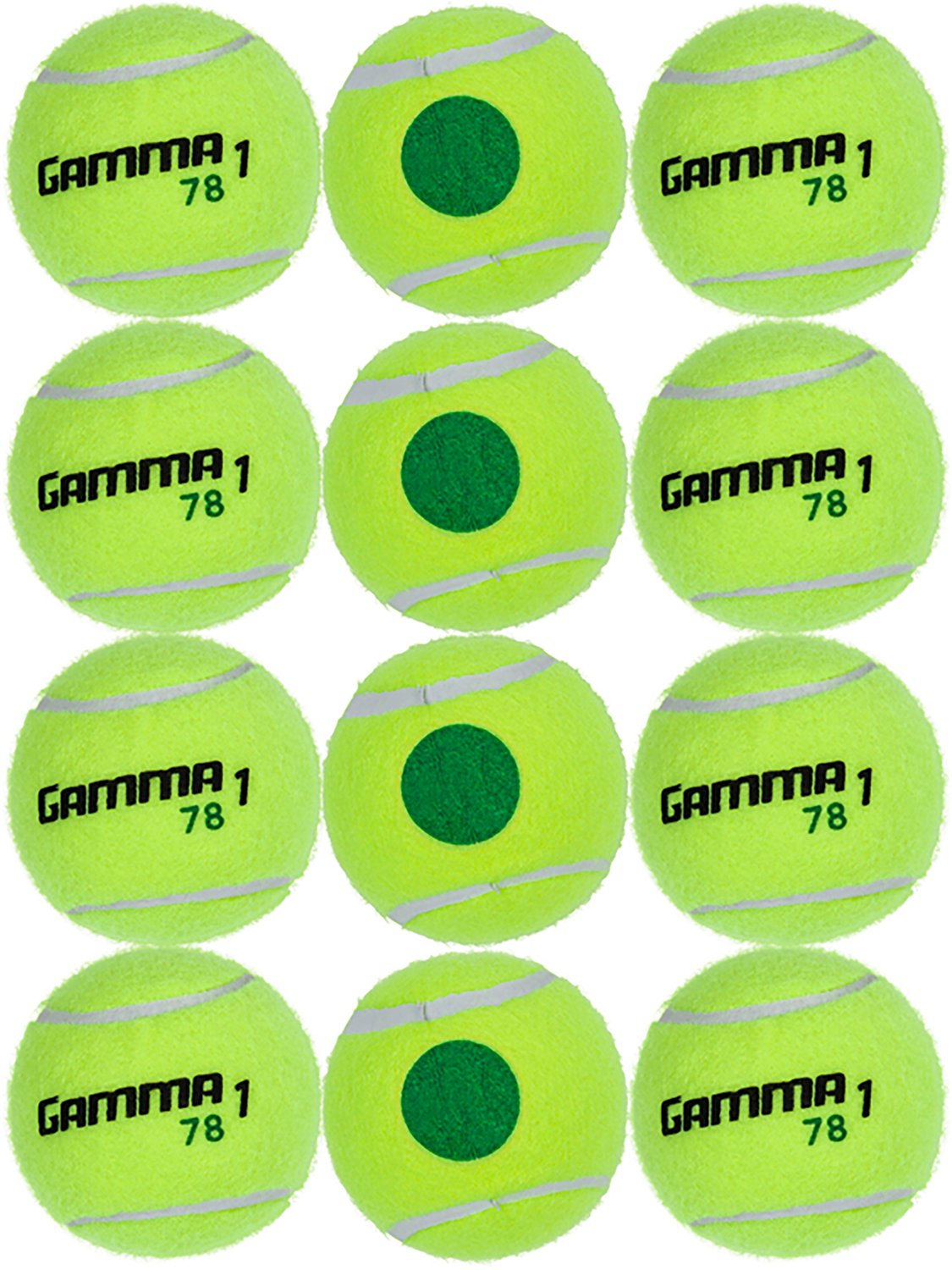 Help kids improve their tennis skills with the Gamma Green Dot 78 Kids' Tennis Ball 40-Ball Box. Approved by the USTA for kids' tournament play, these balls are numbered 1 - 3 with a green dot. The low compression rubber core results in reduced ball speed and bounce, giving kids the control they need to master their skills, while the polyester cover offers lasting use.