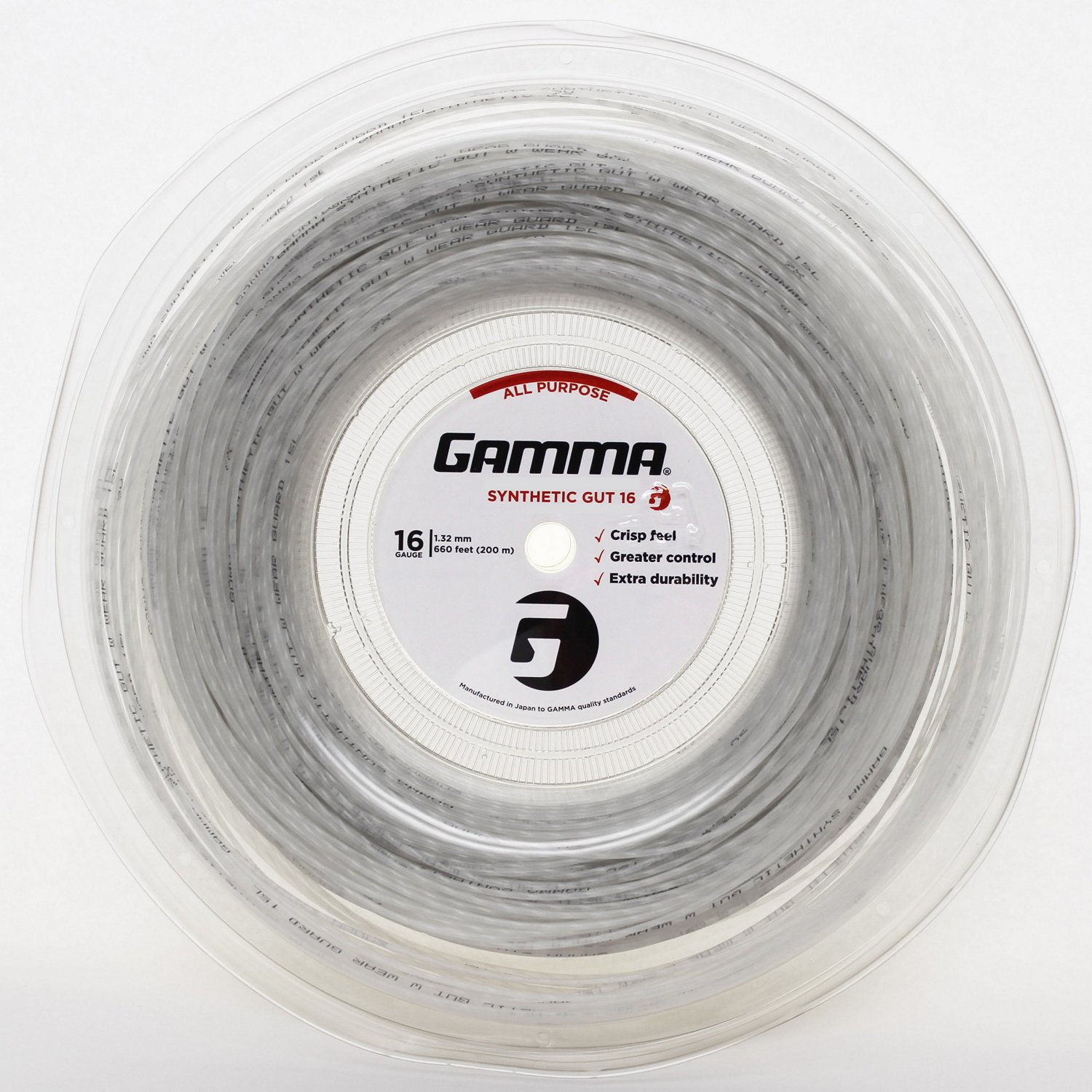 Hit the ball with confidence with the Gamma Synthetic Gut 16 Gauge Tennis String Reel. This 16 gauge synthetic performance string measures 720 feet and offers a balance of playability and durability for all playing levels and styles.