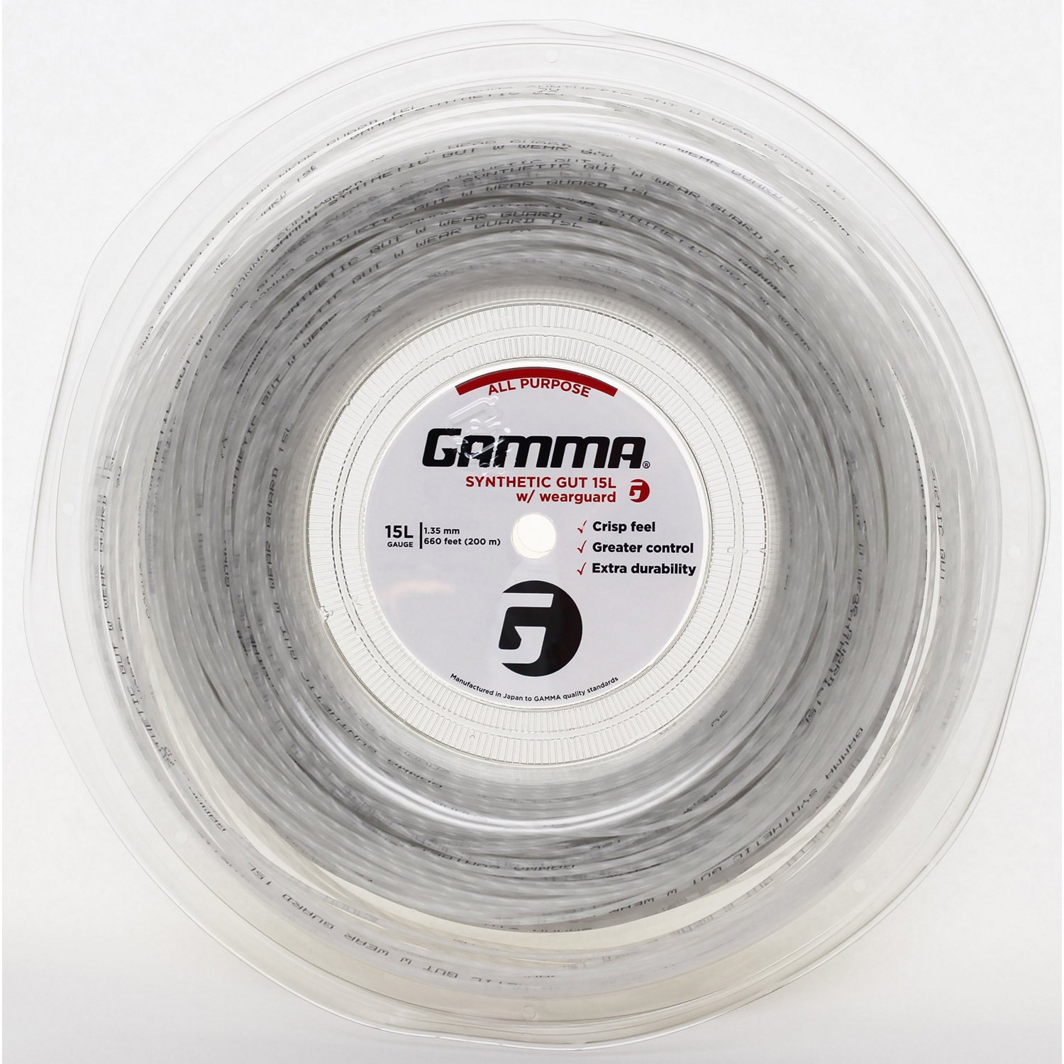 Hit the ball harder with the Gamma Synthetic with Wearguard Gut Reel. This 15L-gauge synthetic performance string offers a balance of playability and durability for all playing levels and playing styles. The Wearguard fibers coat the exterior of the string to prevent notching and reduce friction.