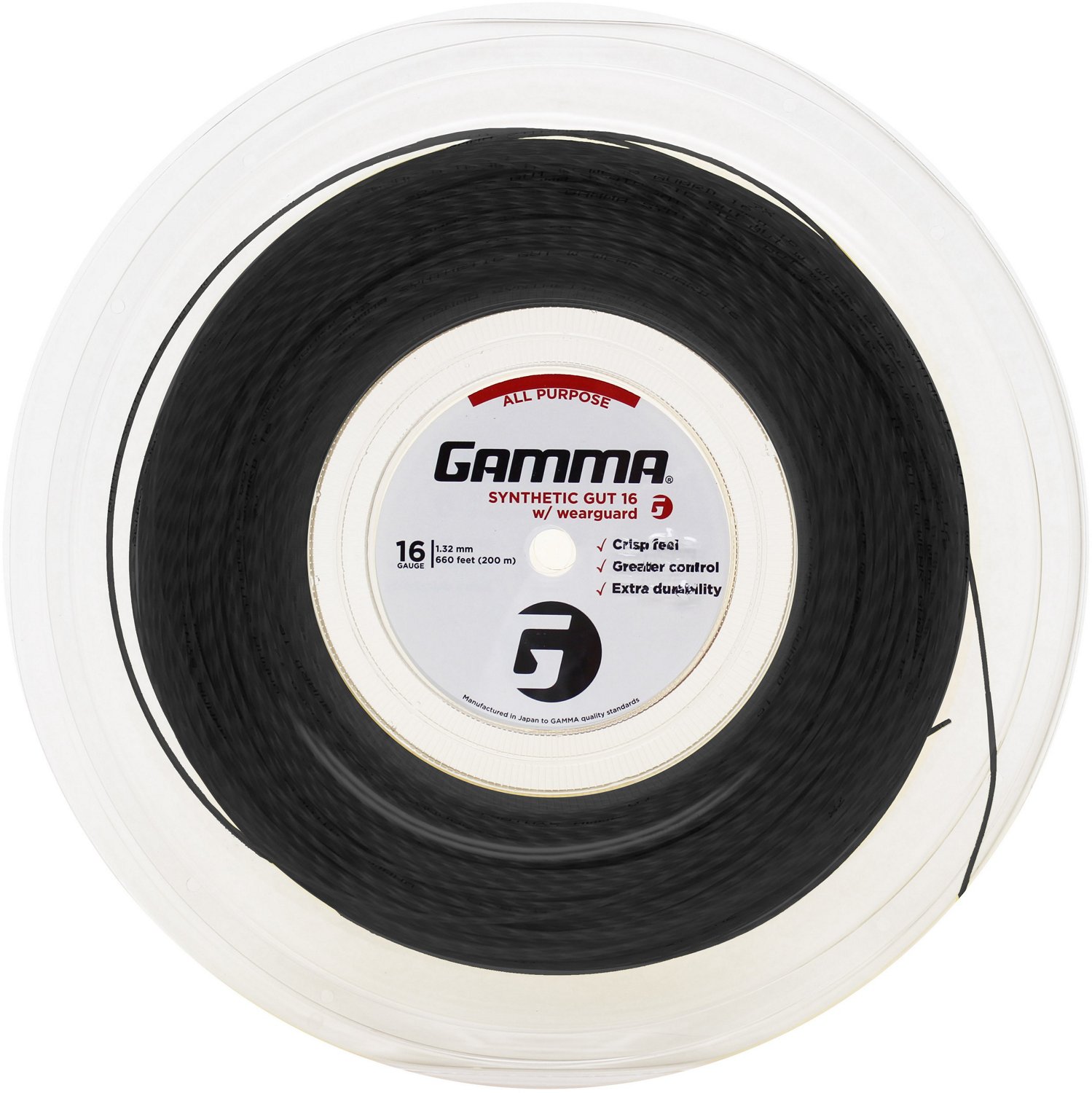 Hit the ball harder with the Gamma Synthetic with Wearguard Gut Reel. This 16-gauge synthetic performance string measures 660 feet and offers a balance of playability and durability for all playing levels and playing styles. The Wearguard fibers coat the exterior of the string to prevent notching and reduce friction.
