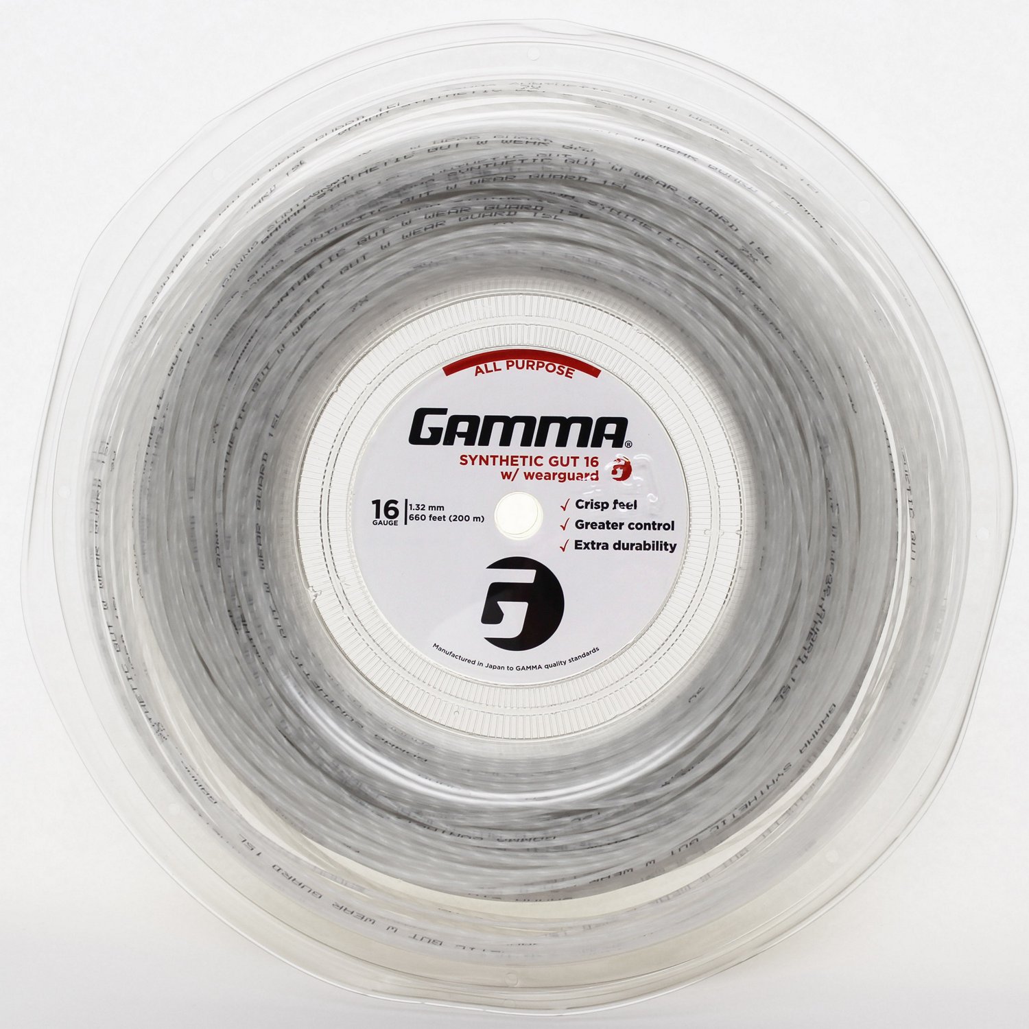 Hit the ball harder with the Gamma Synthetic with Wearguard Gut Reel. This 16-gauge synthetic performance string measures 660 feet and offers a balance of playability and durability for all playing levels and playing styles. The Wearguard fibers coat the exterior of the string to prevent notching and reduce friction.