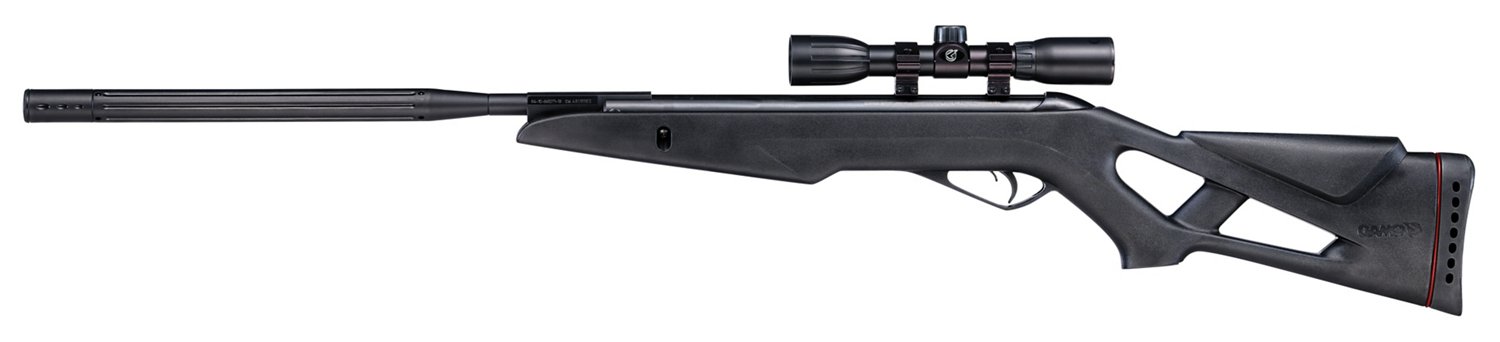 Great for pest control and recreational shooting, the Gamo Black Knight .177 Caliber Air Gun is equipped with a 4 x 32 scope and features a polymer-jacketed steel barrel with Whisper noise-dampening technology. A rubber pad absorbs recoil. All-weather, automotive-grade glass-filled nylon stock.