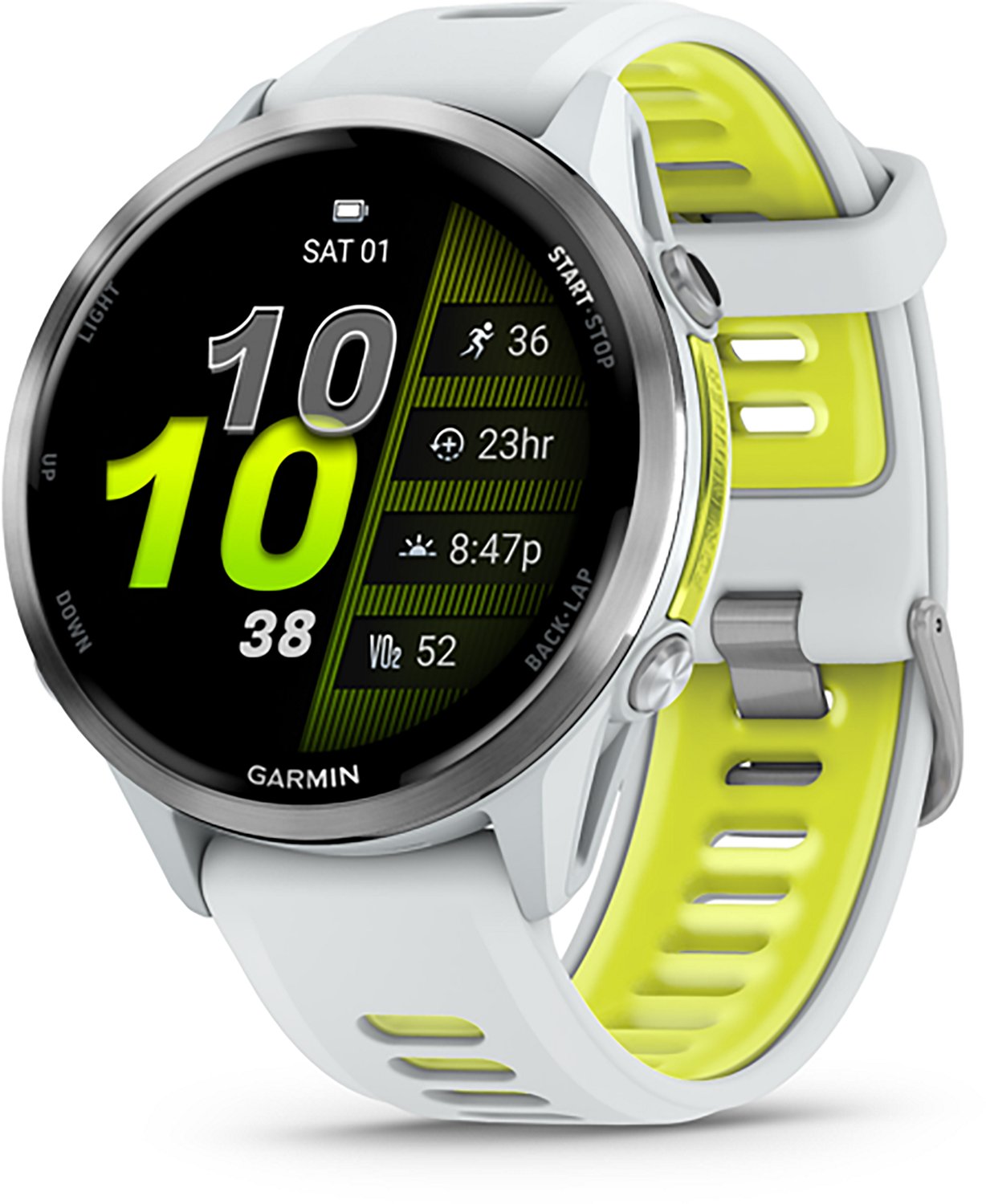 Enhance your run with the Garmin Forerunner 970 Running Watch. Its AMOLED display provides an energy efficient, superior picture quality. The running and cycling workouts made for you adapt after every run to match your performance and recovery, and its built-in speaker and microphone allow you to take calls on the go. The ECG app uses sensors to record the electrical signals that control how your heart beats, analyzing recordings to detect signs of an irregular heart rhythm.