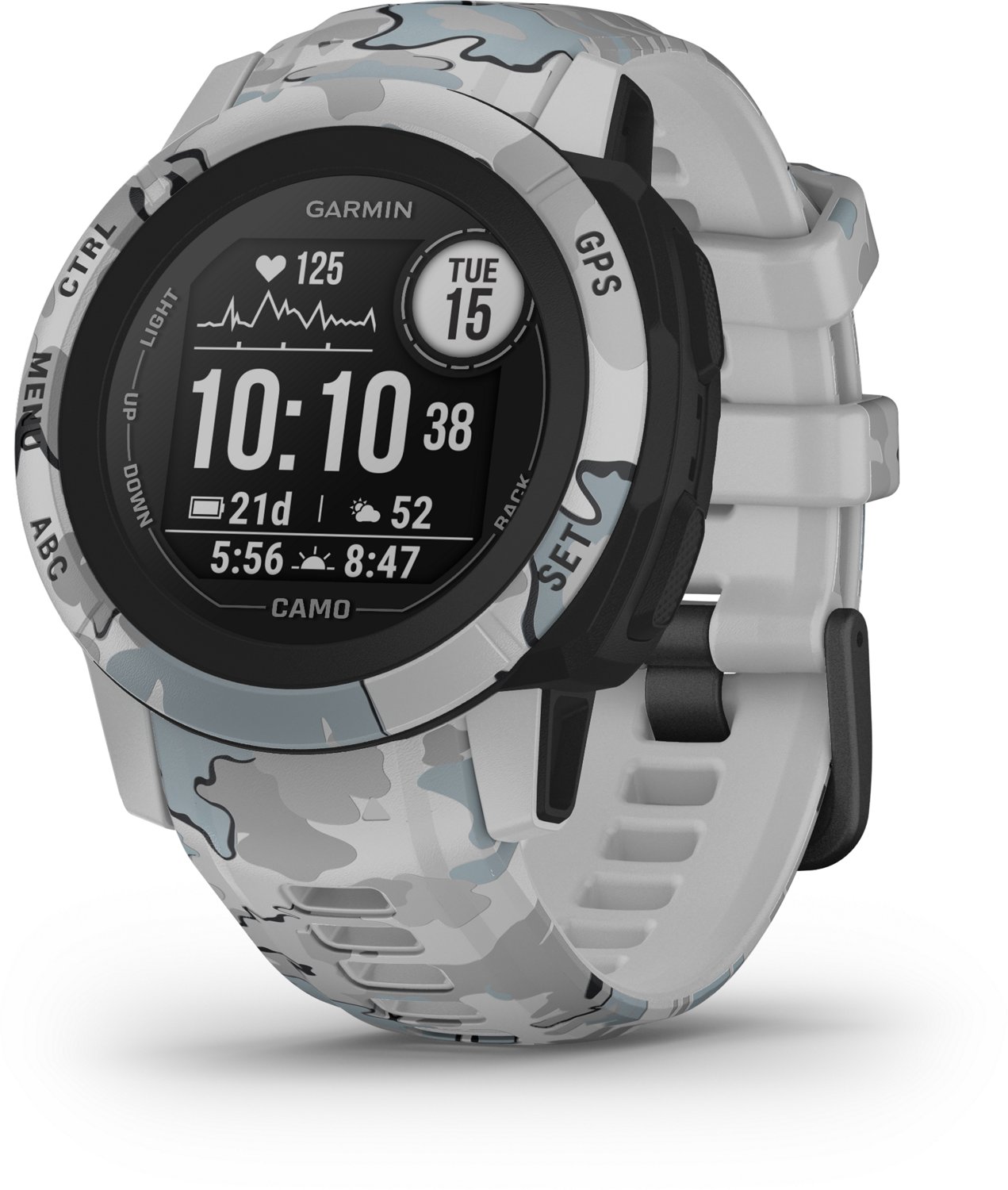 Enhance your outdoor excursions with the Garmin Instinct 2S Camo Smartwatch. The high-contrast display promotes readability, while multi-GNSS support tracks your position when hiking, mountain biking, trail running or skiing. Daily suggested workouts help meet your performance and recovery goals, and sleep score and advanced sleep monitoring provides a breakdown of light, deep and REM sleep stages.