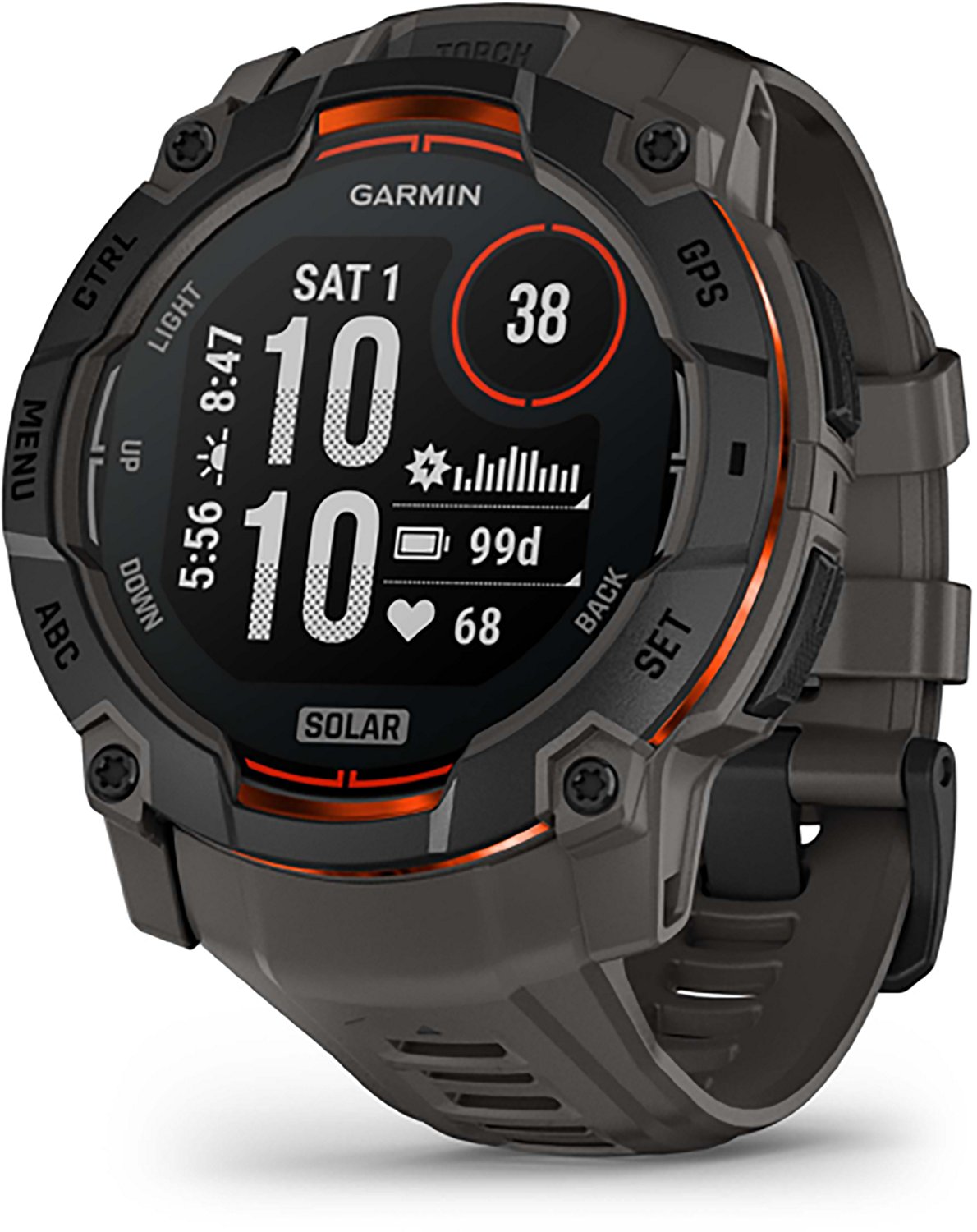 Enhance your workout with the Garmin Instinct 3 50mm Solar Watch. Its solar charging allows you to stay on the mission until it’s done with unlimited battery life in smartwatch mode. The health monitoring features, like heart rate, advanced sleep monitoring, Pulse Ox3, and more, keeps you up to date on your body, and its multi-band GPS with SatIQ technology delivers superior positioning. Receive emails, texts, and alerts when paired with your compatible Apple® or Android™ smartphone.