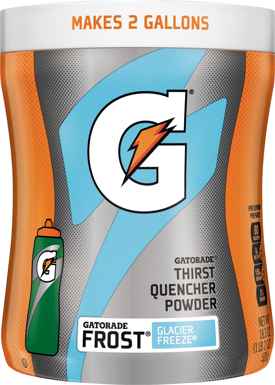 Keep yourself hydrated during your game, workout or training session with the Gatorade G Series 02 Perform Thirst Quencher Instant Powder Mix. This instant powder formula makes up to 8 quarts and has 80 calories per 12 fl. oz. serving. NCAA compliant. 18.4 oz. canister.