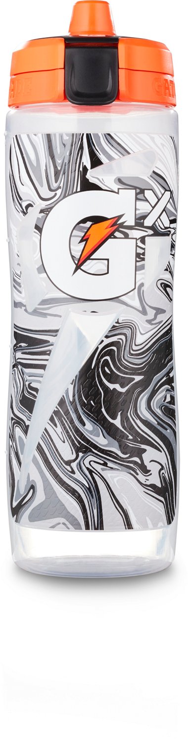 Stay hydrated with ease on the go when you carry the Gatorade GX Print 30 oz Bottle. Made from plastic for durability, this bottle features a no-slip Gator-Skin™ for an easy, secure grip and boasts an ergonomic shape to help ensure comfortable handling. The flip cap design and High-Flow valve allows for convenient hydration, while the construction is BPA-free and dishwasher safe for convenient, safe use.