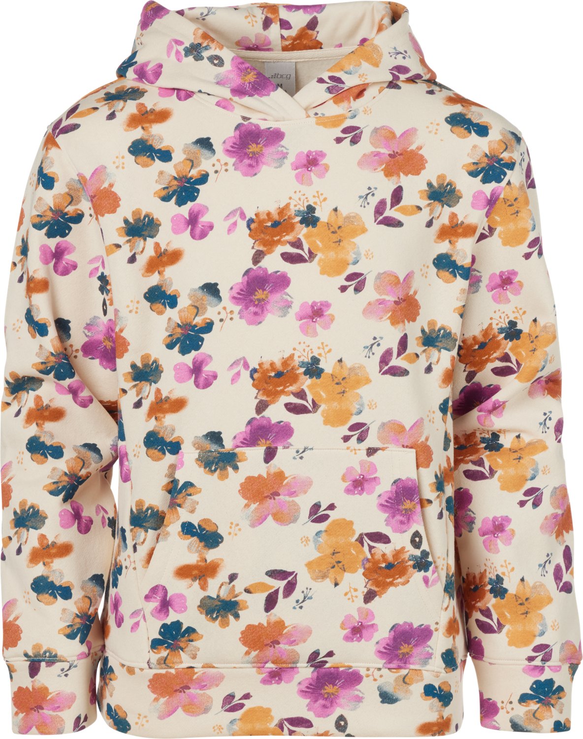 Enjoy comfort and floral fun with the BCG Girls' Floral Fleece Print Hoodie. The cotton-polyester blend fleece and jersey liner is soft and warm, and the all-over graphic print is fun and stylish.