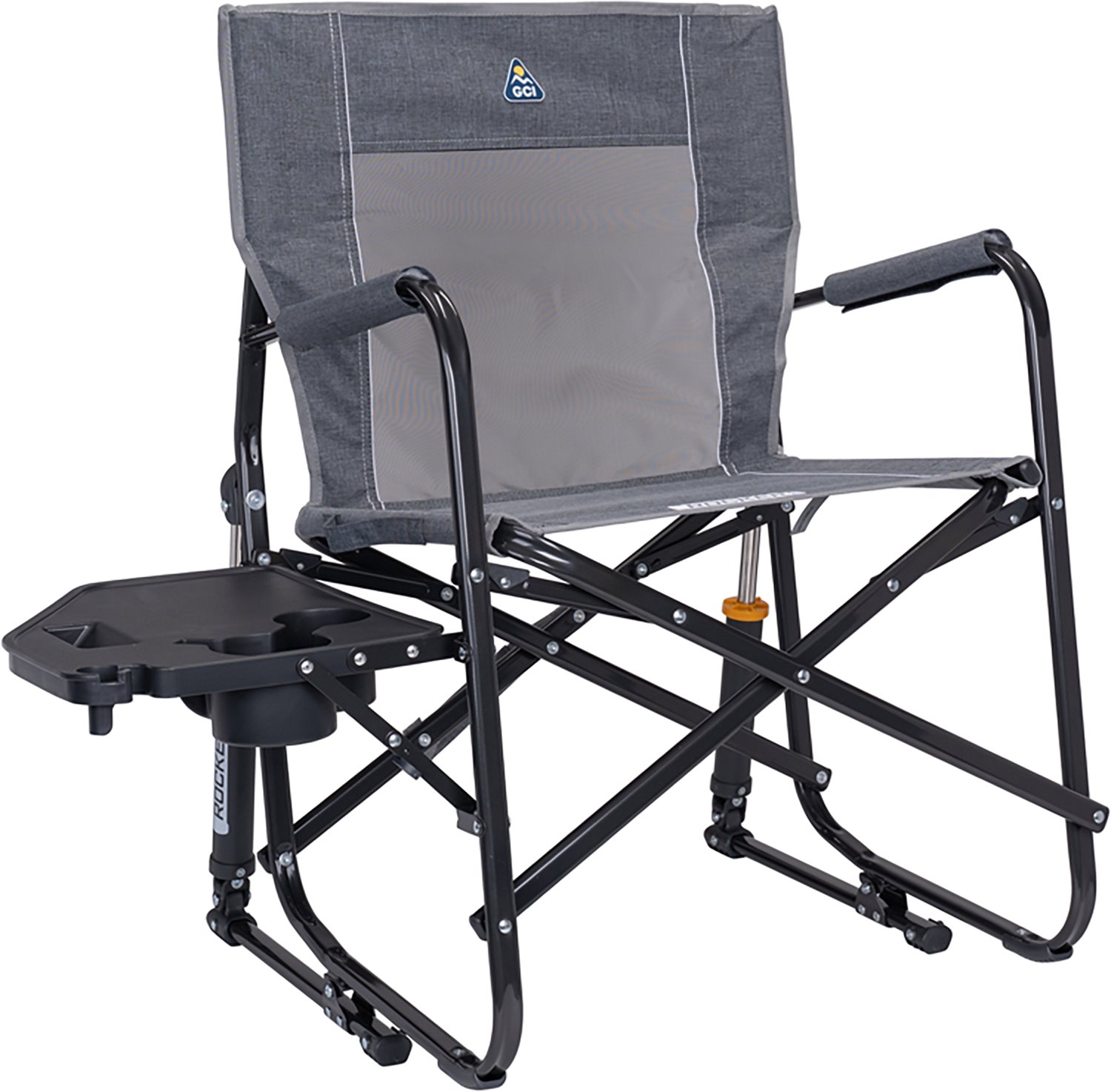 Elevate your outing with the comfort and convenience of a GCI Outdoor Freestyle Rocker with Side Table. The powder-coated aluminum and steel frame delivers lightweight durability and folds out easily with E-Z Fold technology. Spring-action rocking delivers smooth motion, while a mesh backrest and padded armrests enhance comfort.