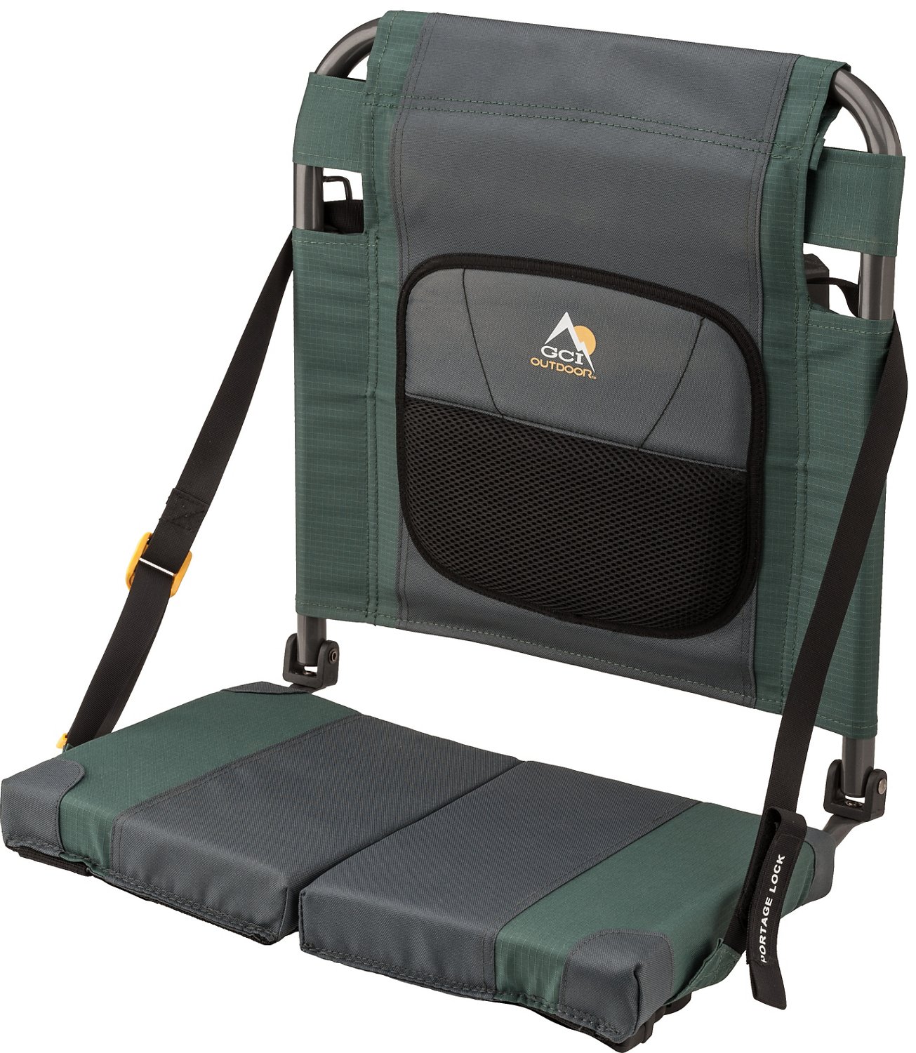 With its 16" split-contour seat, the GCI Outdoor SitBacker™ Canoe Seat is great for molded and flat canoe benches and can also be used for watching sports and camping. A powder-coat steel frame ensures durability and the dual-buckle strap system allows easy bench attachment. BackComfort™ technology and a lumbar cushion provide comfortable back support. Shoulder strap with Auto-Fold technology for easy opening, closing and carrying. Storage pocket.