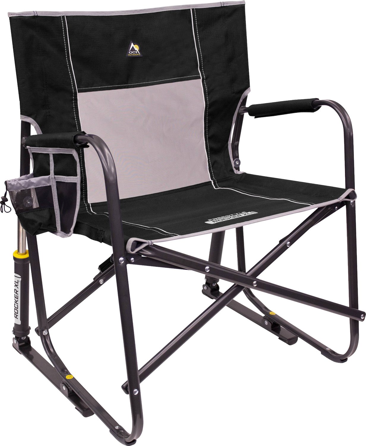 Treat yourself to a relaxing night by the fire in the GCI Outdoor XL Freestyle Rocker. Its wide tension seat with mesh backrest keeps you comfortable, while the Spring-Action Rocking Technology™ provides smooth rocking motion ideal for taking a nap or reading a book. The chair folds flat for easy storage and has a convenient carry handle. Steel frame supports up to 400 pounds.