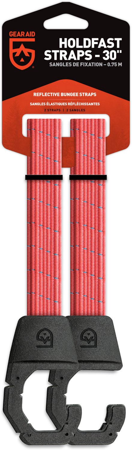 Elevate your gear organization with the Gear Aid Holdfast Strap 30 in 2-Pack. Its elastic webbing is flat, flexible, and strong to secure gear organization. The over-molded steel hook ensures a sturdy and reliable connection, and its reflective tick enhances visibility in low-light conditions. It reaches a maximum stretch length of 45-inches .
