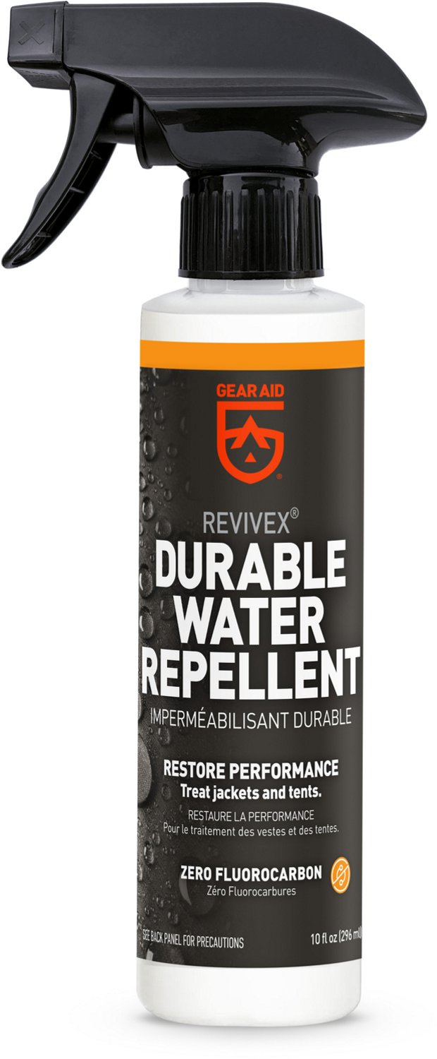 Revitalize your gear with the Gear Aid Revivex 10 fl oz Durable Water Repellent Spray. This spray restores DWR coating to technical gear, including GORE-TEX jackets, rainwear and ski pants, and it repels water, dirt and stains while improving breathability.