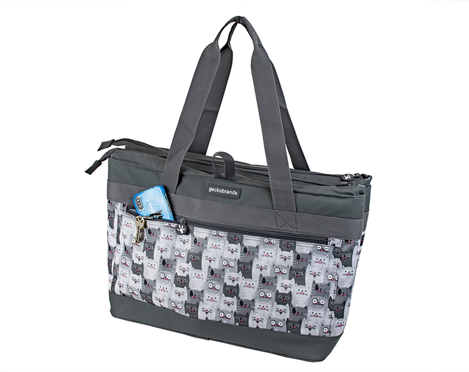geckobrands Cats Print 2 Compartment 40 Can Tote Cooler