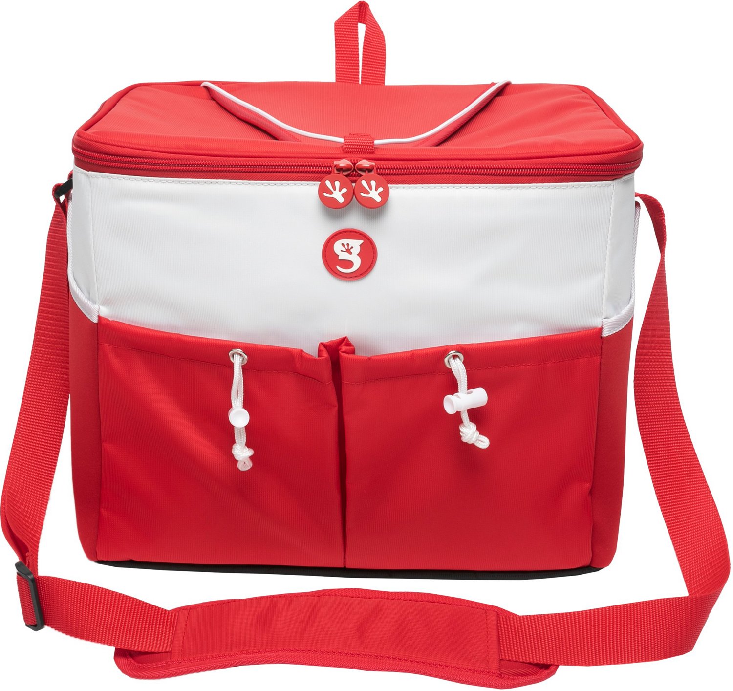 Enjoy your chilled beverage all day with the Geckobrands Large 24 Can Cooler. The premium-coated polyester construction offers long-lasting use, and the neoprene-padded carry strap provides a custom fit for comfortable transportation. The 2 large neoprene side pockets, 2 front pocket pouches and a rear zip pocket allows you to conceal items, and the antimicrobial PEVA lining enhances the durability.