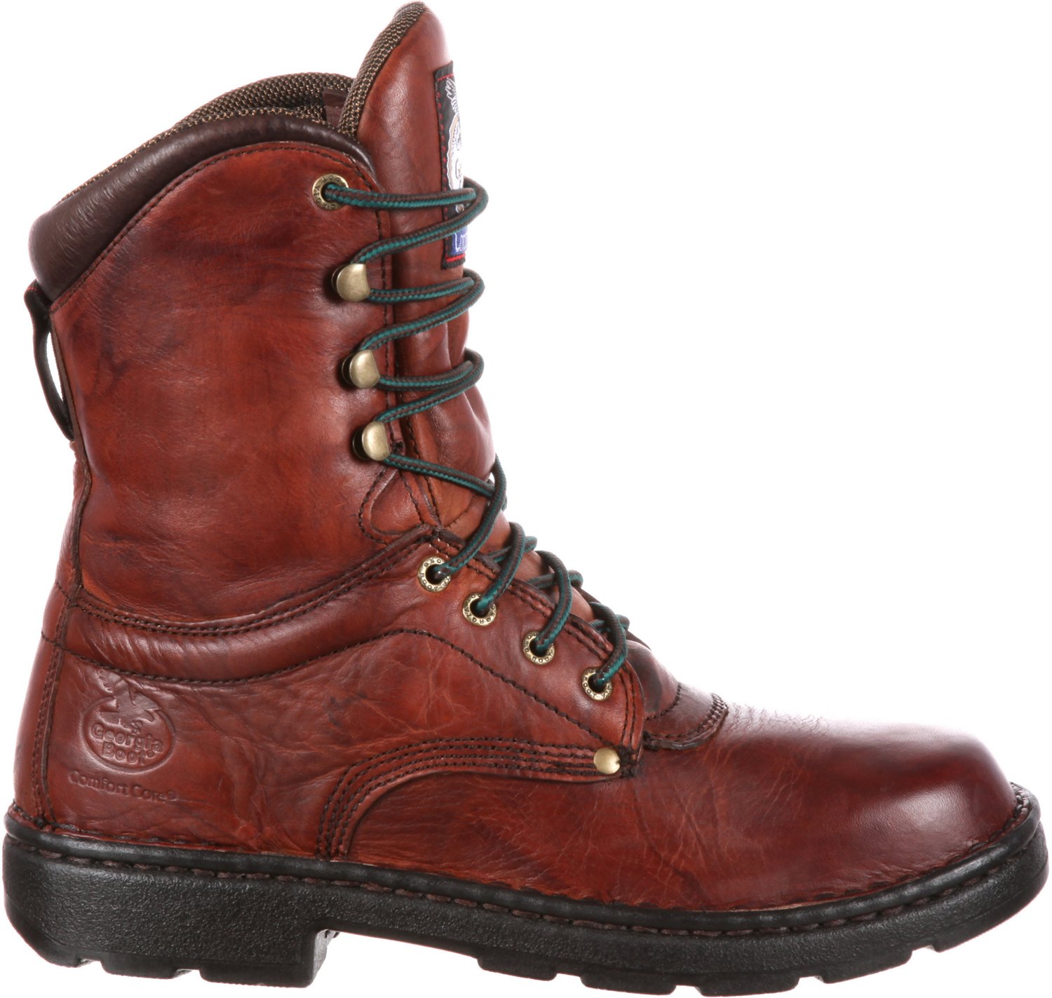Suit up for a hard day's work with the Georgia Men's Eagle Light Lace Up Work Boots. Crafted with full-grain leather uppers and oil-, chemical- and slip-resistant outsoles, these durable boots are designed to weather the trials of the jobsite with ease. Plus, they're made with ComfortCore® insoles, padded collars and moisture-wicking liners to help keep you comfortable throughout each task.
