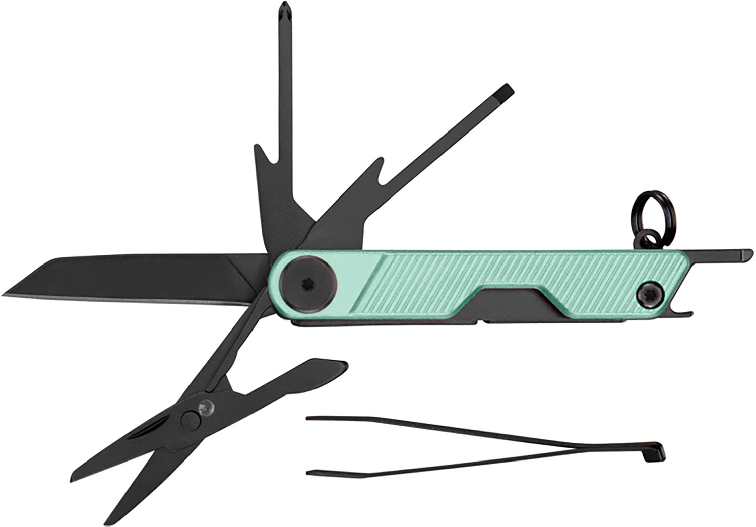 Keep 6 tools on your keychain with the Gerber Armbar Mini Multi-Tool. It is made from anodized aluminum and stainless steel black oxide for a lightweight feel and durability, and it boasts a 1.5-inch plain edge blade to make small and powerful cuts. Features folding scissors and slide out tweezers for grooming.