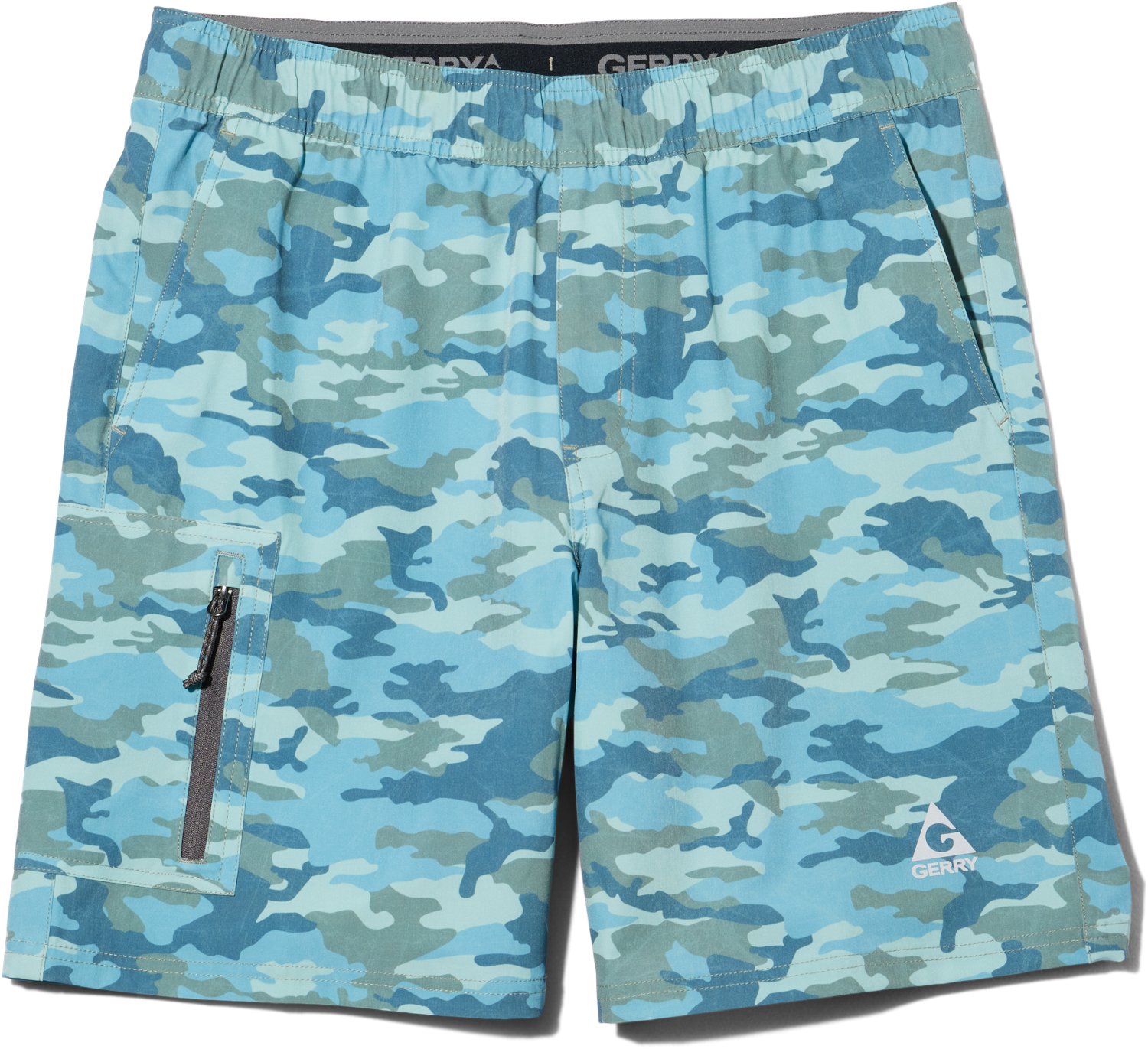 Splash around in the Gerry Men's Nouveu Como Swim Shorts 10 in. Their 4-way stretch and lightweight fabrication provides maximum mobility. The elastic waistband offers a comfortable fit, and their closure has a 1/4 zip. The reflective silver GERRY logo is screen printed on the leg opening.