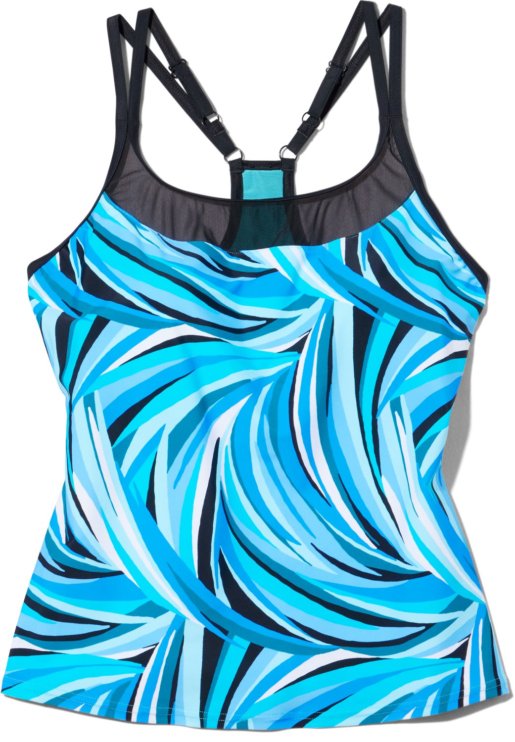 If you want to look your best while enjoying the summer sun, try on the Gerry Women's Crescent Tankini. This swimsuit top is made of nylon and spandex with 4-way stretch fabric to help offer a great fit, and its UPF 30+ sun protection creates a barrier to prevent the sun's rays from getting to your skin.