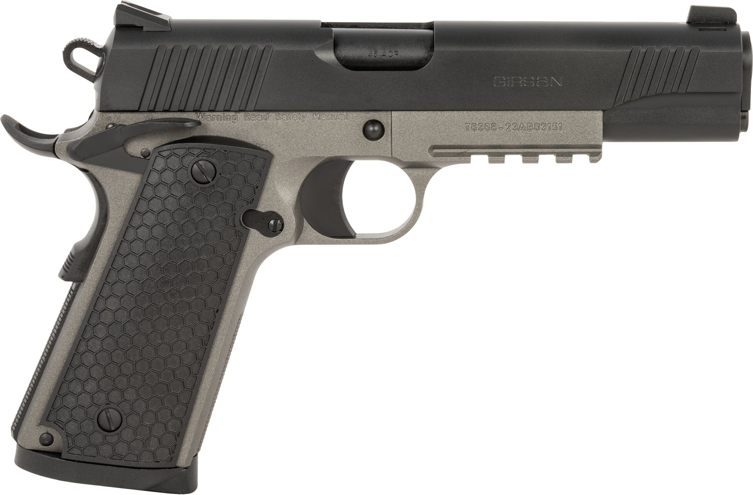 Arm yourself with the EAA Corp Girsan MC1911 S Untouchable .45 ACP Pistol. It has single action with an 8-round capacity, as well as a 5-inch steel barrel. The pistol has a beavertail and Picatinny rail, and it comes equipped with a polymer grip.