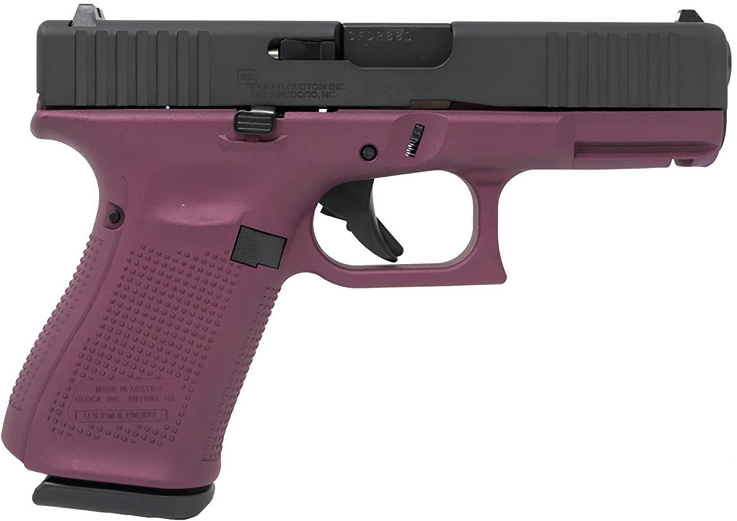 Polymer frame with a black cherry Cerakote finish and a black Cerakote slide finish