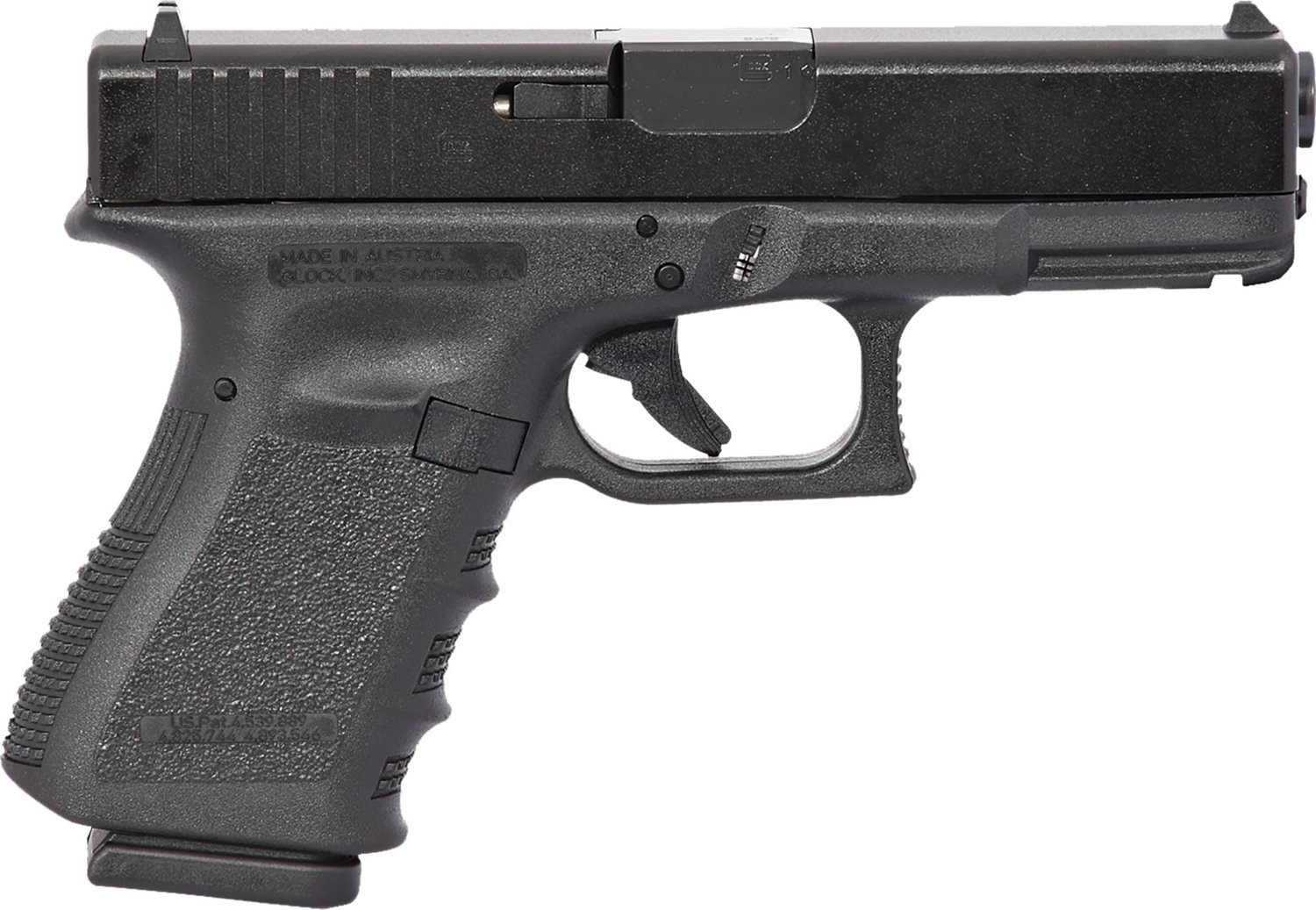 The GLOCK G19 9 x 19mm Semiautomatic Pistol features a compact grip, a polymer frame and polygonal barrel rifling. Screw-on polymer front sight and a fixed polymer rear sight. Safe Action® system with a lever-incorporated trigger safety, a firing pin safety and a drop safety. Made in USA.