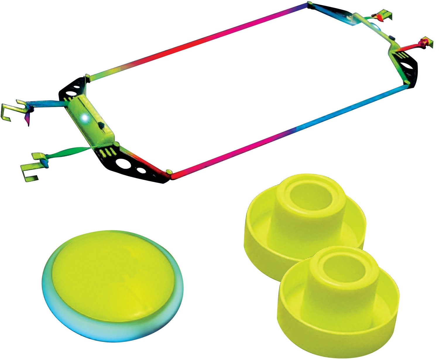 Light up your game room with the Glow Games Air Hockey Table. The heavy-duty plastic construction affords durability, while the adjustable design accommodates most surfaces. The LED lights add color and flair to your game, and bounce back rails help keep the puck in play.