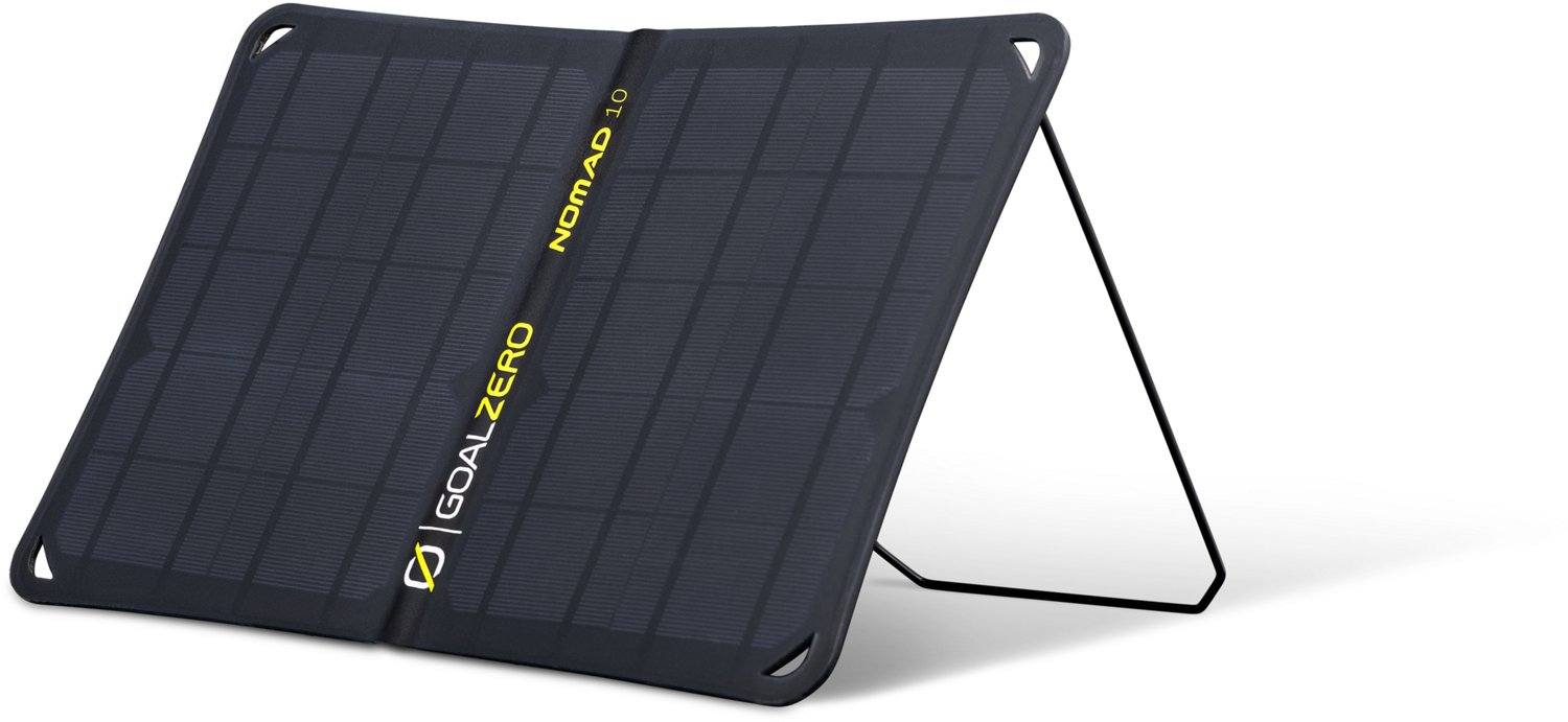Stay prepared on your next adventure with the Goal Zero Nomad 10 Solar Panel. The durable construction provides protection against the elements of your next outing, and the folding design easily straps to your pack or tent for lightweight portability and storage. The USB charging port features 5 volts, up to 1.5 amps (7.5 watts max) delivering fast charging times.