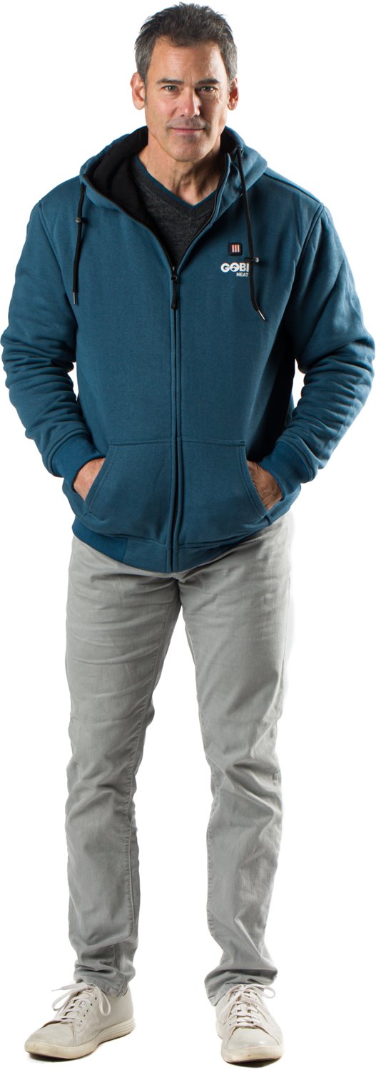 Stay warm and stylish in the Gobi Heat Men's Ridge 3-Zone Heated Hoodie. Made with a blend of cotton and polyester, this full-zip sweatshirt is lightweight yet durable. The polar fleece lining adds a soft, cuddly feel. The 3 battery-powered heating zones provide active warmth in strategic areas, and your temperature is customizable with 3 settings.