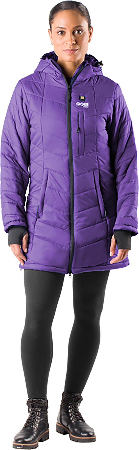 Maintain warmth during your travels with the Gobi Heat Women's Victoria Heated Puffer Jacket. The nylon fabric provides warmth and comfort, while wind and water resistance helps keep you dry. The 7.4-volt 6,500 mAh battery delivers up to 9 hours of heat, and multiple heat settings and heating zones ensure full coverage heating.