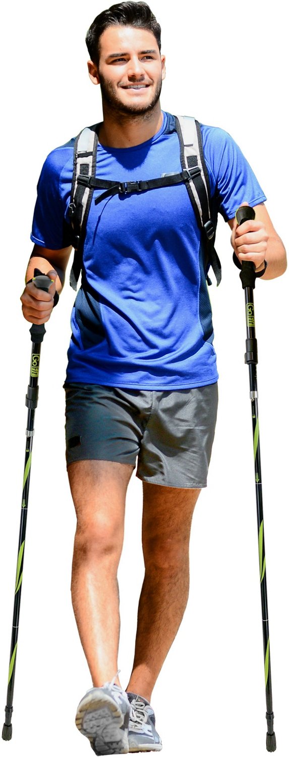 Bring along the GoFit GoTrek Trekking Poles for your next walk or hike. Trekking poles have many benefits. Not only do they help stabilize you on rough terrain, but they also help improve posture, prevent back pain and build upper body strength. These trekking poles are made from sturdy aluminum and are suitable for all terrain types - uphill and downhill - and they have a trifold design to ensure they pack down small. Ergonomic foam grips keep your hands comfortable throughout every trip..