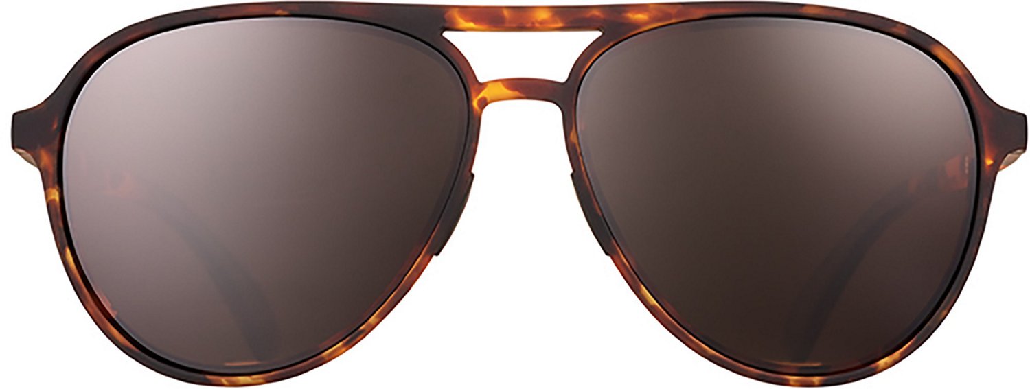 Soar to stylish heights while working out with the goodr Mach G Aviator Lens Sunglasses. Featuring a tortoiseshell frame that stays in place and polarized lenses, these sunglasses add style while reducing glare. The scratch-resistant and shatterproof lenses make these glasses durable enough to wear during the hardest workouts, , and the UV400 protection blocks 100% of harmful UV rays.
