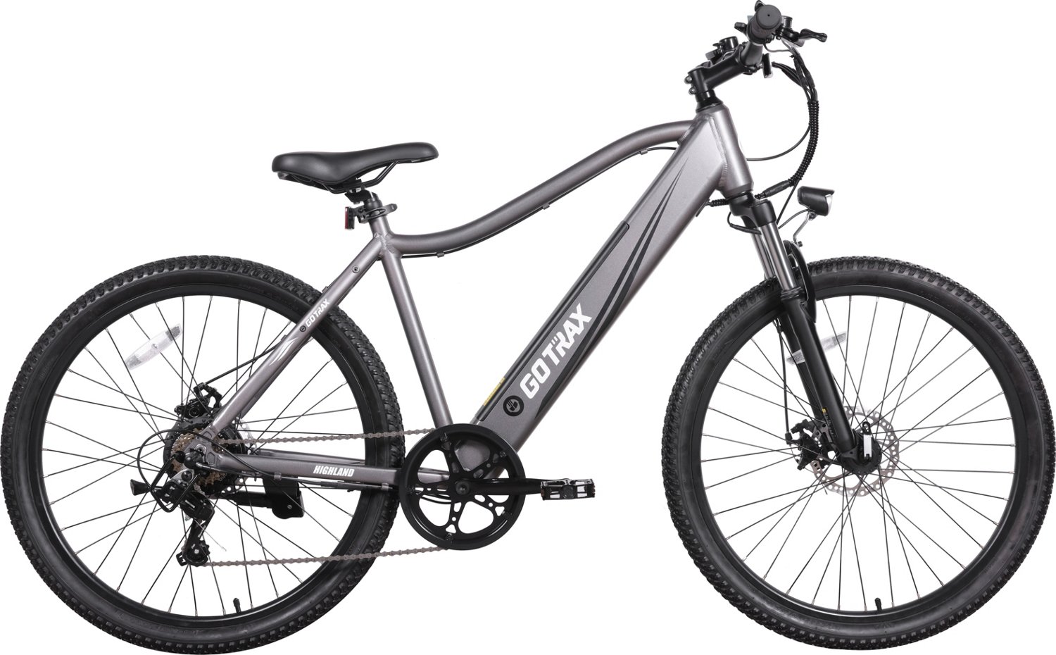Take on any hill and adventure with the GOTRAX 26 in Highland Electric Bike. The rear wheel motor can reach speeds of up to 20 mph, and the aluminum alloy material ensures long-lasting use. The adjustable saddle position seat provides optimal comfort during the ride, and the front and rear disc brakes deliver dependable stopping.