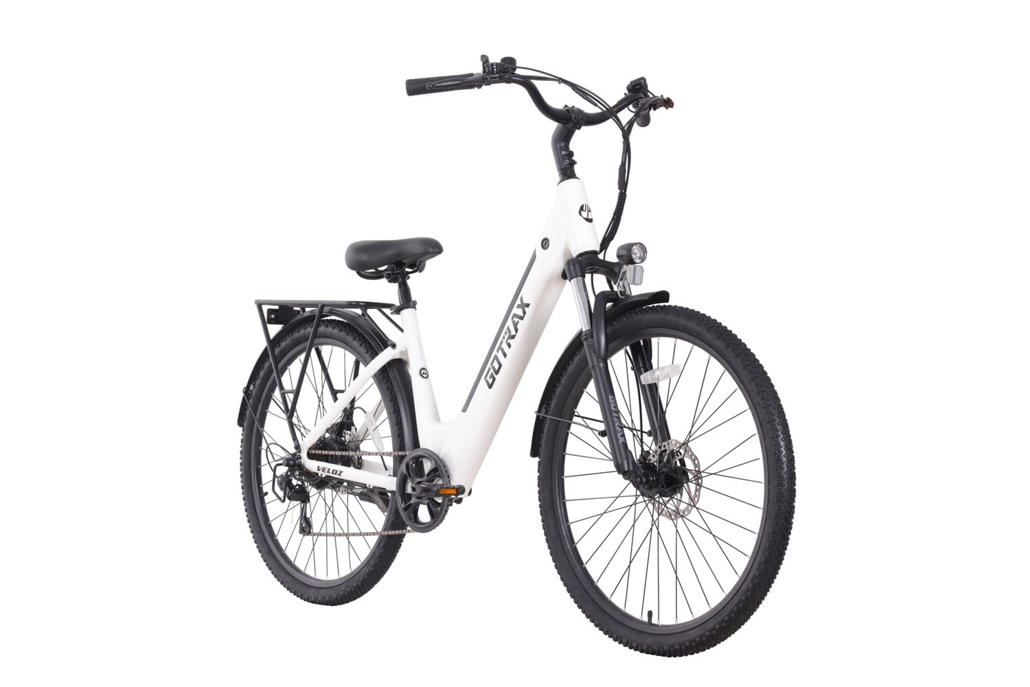 Enjoy the ride with the GOTRAX Adults' Veloz City 27.5" 7-Speed Electric Bike. Its 350 watt rear hub motor allows you to reach up to 20 mph. The steel frame enhances durability, and its mechanical disc brakes offers a smooth performance. The Shimano 7-speed shifter requires low maintenance.
