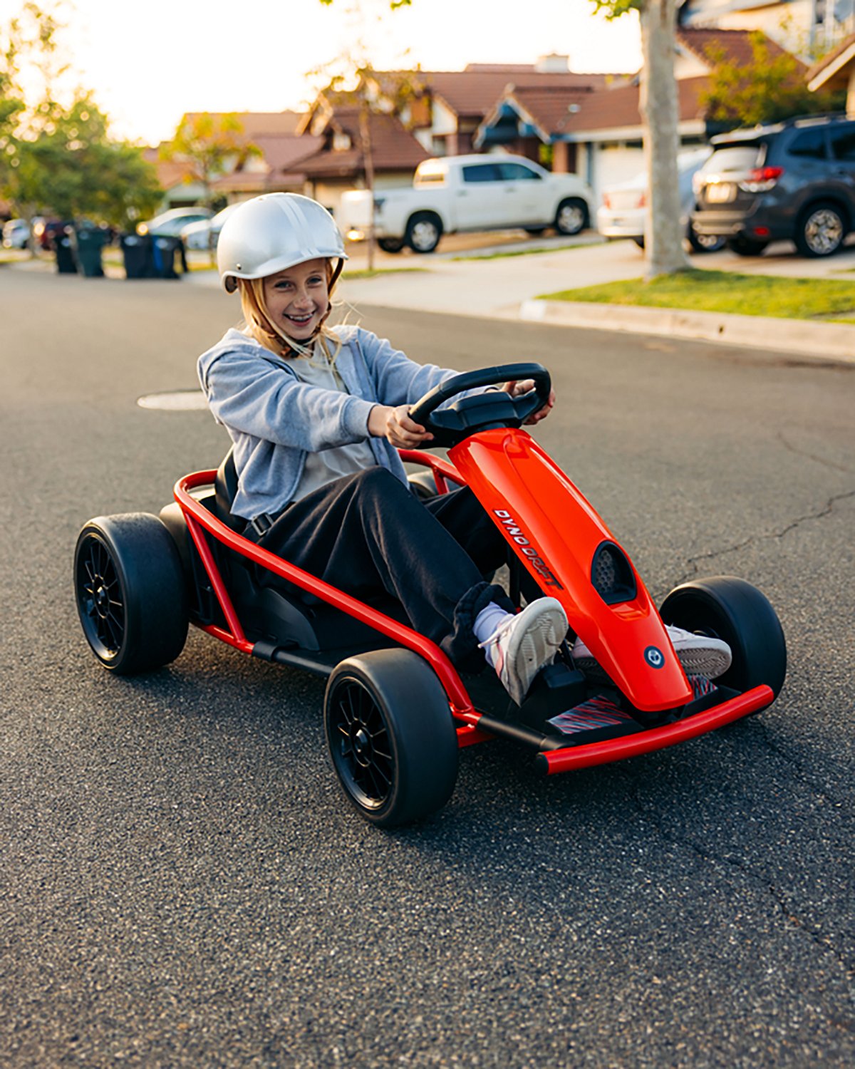 Boost outdoor fun with the GOTRAX Dyno Drift Kart. This vehicle, designed for children aged 8-12, features a steel frame built for frequent use. The two 180-watt motors and the two 12-volt, 7-ampere-hour batteries produce enough energy for the kart to reach a speed of eight miles per hour.
