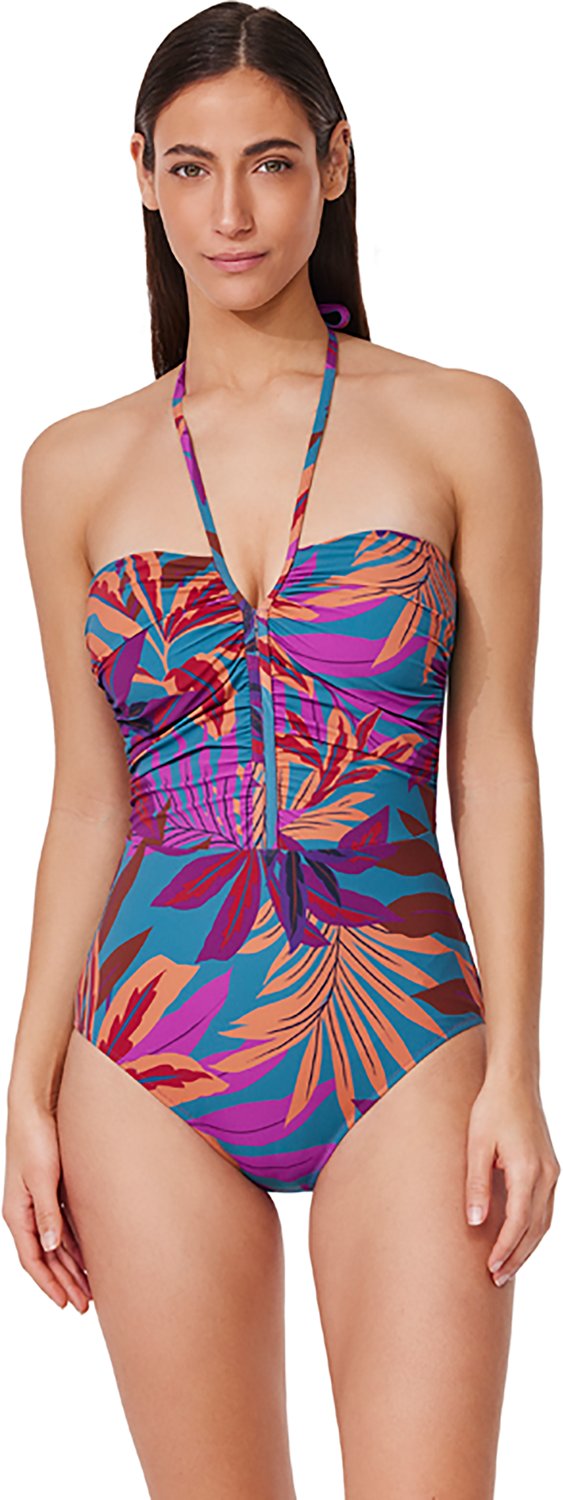 Go for a swim with the Gottex Women's Plantopia Bandeau 1-Piece Swimsuit. The nylon and lycra fabric provides a comfortable feel, while the adjustable halter straps offer a custom fit. The allover print delivers a stylish touch.