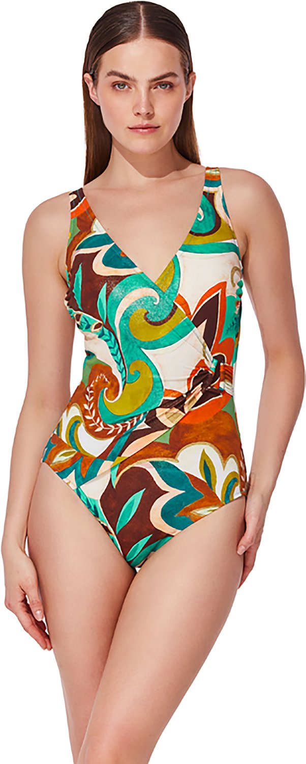 Go for a swim with the Gottex Women's Porto Surplice 1-Piece Swimsuit. The nylon and lycra fabric provides a comfortable feel, while the adjustable straps offer a custom fit. The allover print delivers a stylish touch.