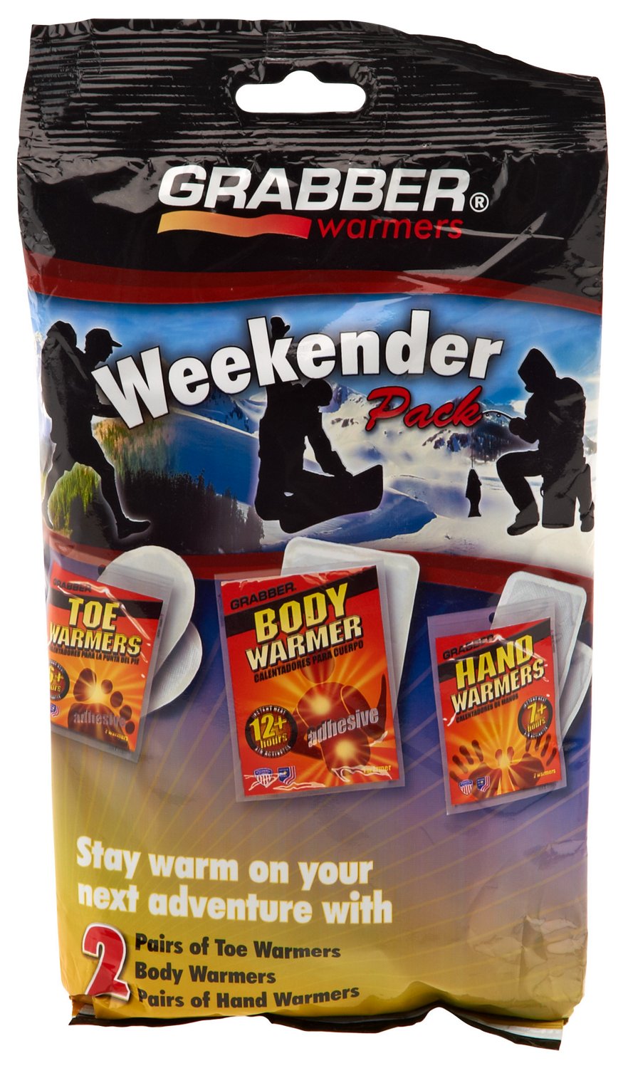 Stay warm while hunting, camping, hiking or doing other cold-weather activities with these Grabber Toe Warmers, Hand Warmers, and Body Warmers. This multi-pack inculdes 2 Hand, 2 Toe, and 2 Body Warmers.