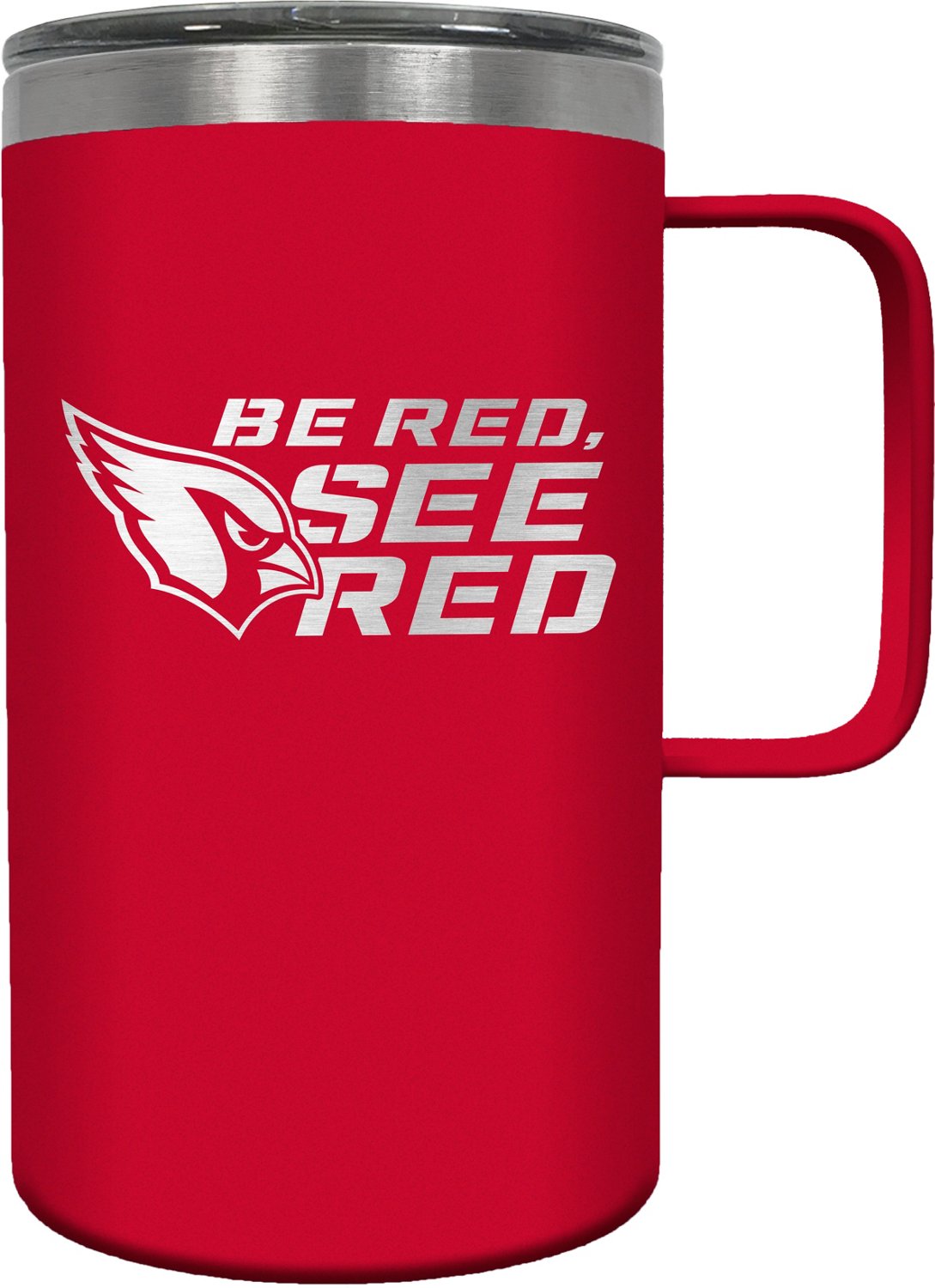 Cheer for the Cardinals while sipping your favorite drink from the Great American Products Arizona Cardinals Hustle 18 oz Travel Mug. The vacuum insulation helps keep your beverage at the desired temperature, and the laser-etched team graphics make it clear that you're a true fan.