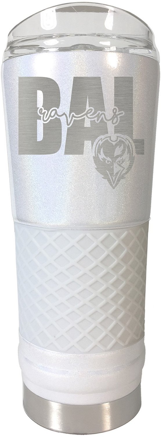 Enjoy a favorite beverage while showing team spirit with the Great American Products Baltimore Ravens Opal Draft Tumbler. This high-quality stainless steel vessel is vacuum insulated to keep drinks hot or cold longer. The silicone grip allows comfortable handling, while a laser etched team logo helps you show your support.