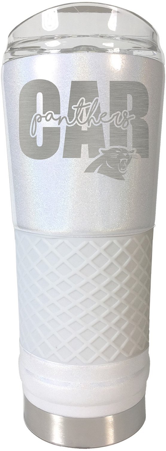 Enjoy a favorite beverage while showing team spirit with the Great American Products Carolina Panthers Opal Draft Tumbler. This high-quality stainless steel vessel is vacuum insulated to keep drinks hot or cold longer. The silicone grip allows comfortable handling, while a laser etched team logo helps you show your support.