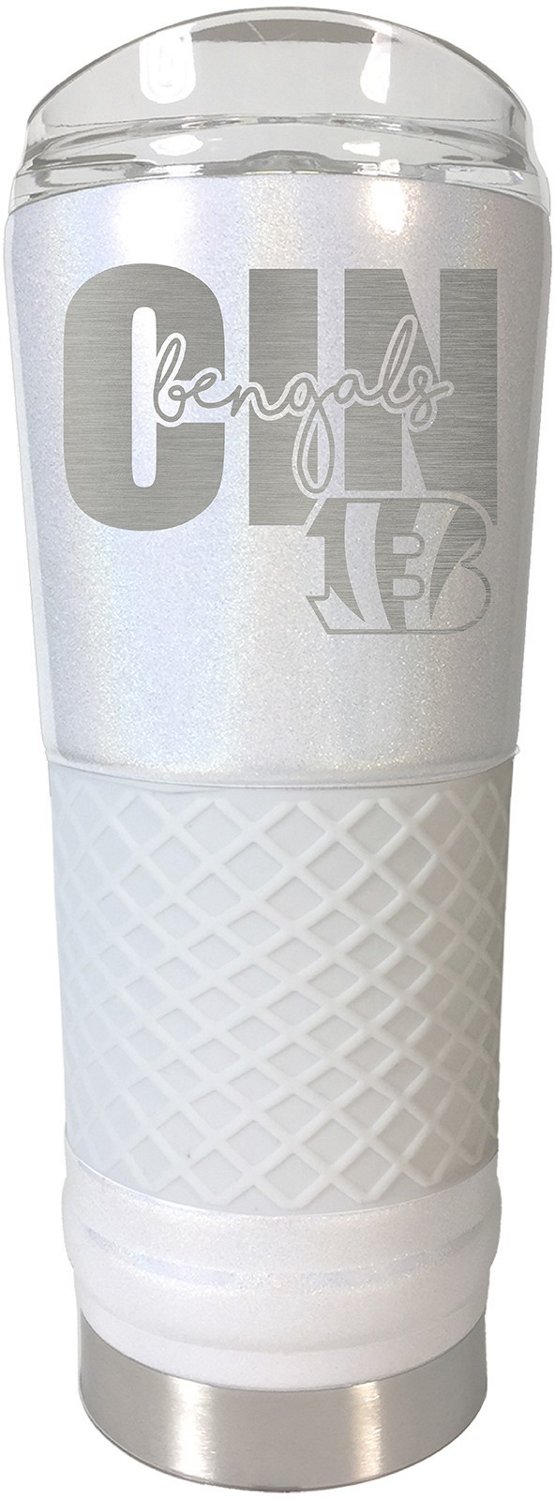 Enjoy a favorite beverage while showing team spirit with the Great American Products Cincinnati Bengals Opal Draft Tumbler. This high-quality stainless steel vessel is vacuum insulated to keep drinks hot or cold longer. The silicone grip allows comfortable handling, while a laser etched team logo helps you show your support.