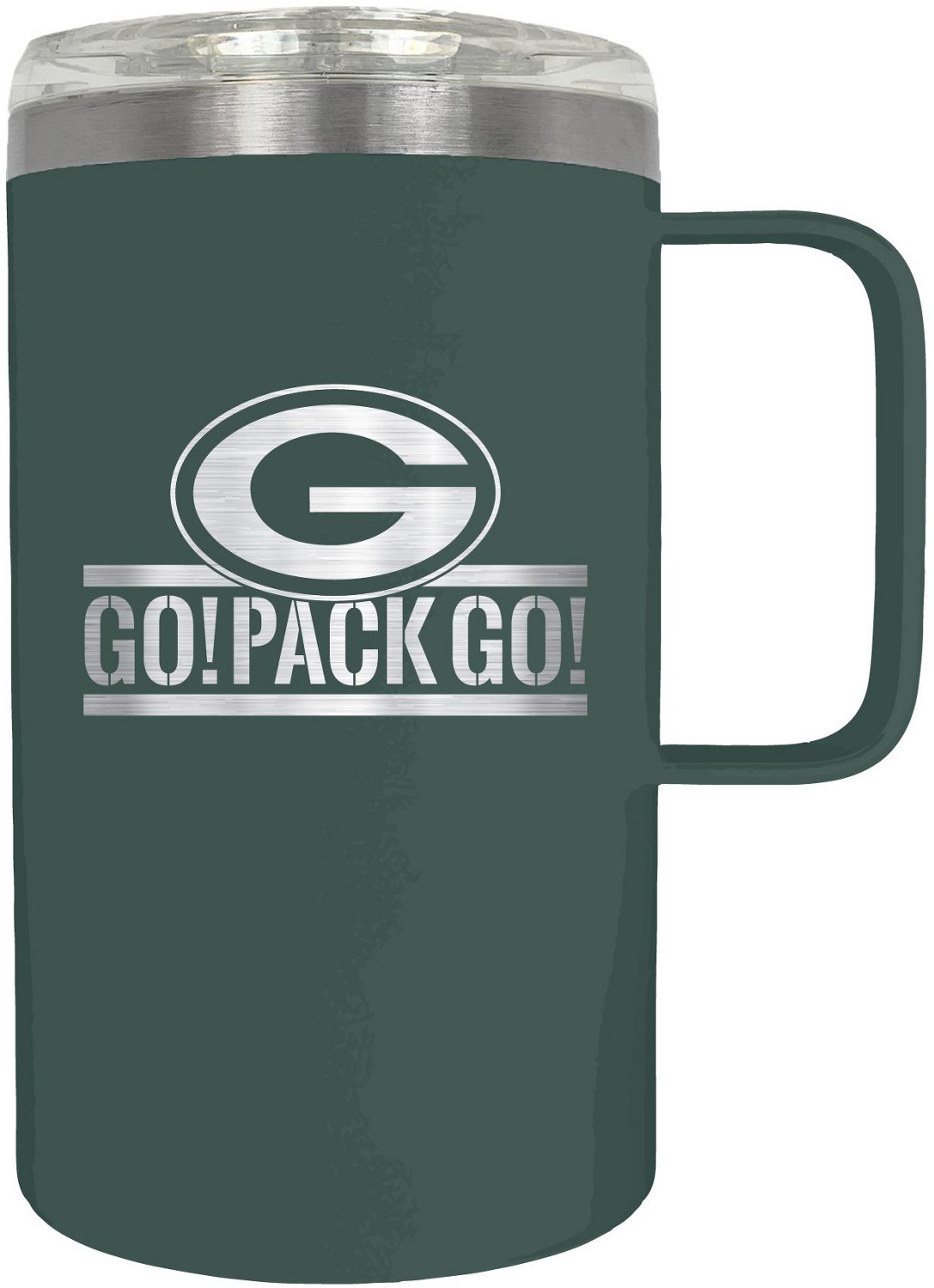 Take your favorite beverage to work, the gym or the stadium with a Great American Products Green Bay Packers 18oz Hustle Travel Mug. This handy mug is vacuum insulated so beverages stay hot or cold for optimum enjoyment. A large handle allows comfortable carrying, a spill-resistant lid prevents messes, and an engraved logo shows your team pride.